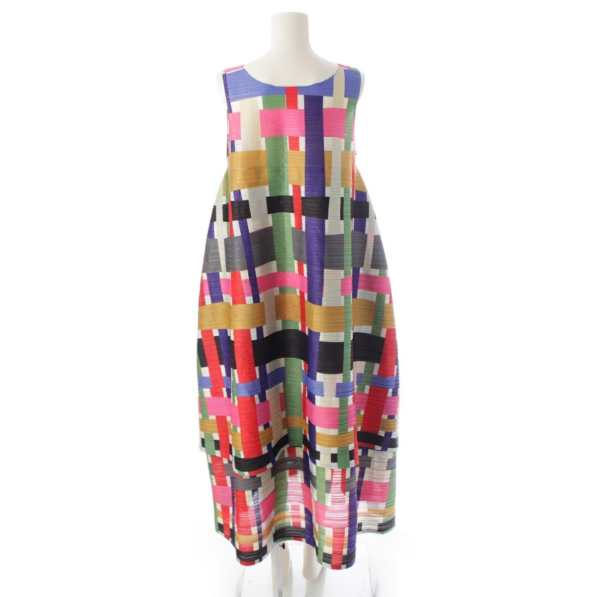 プリーツプリーズ イッセイミヤケ 19年 ボックスチェック バウンスプリーツ レイヤード ワンピース トップス ボトムス スカート PP93-JH922 レインボー マルチカラー 3