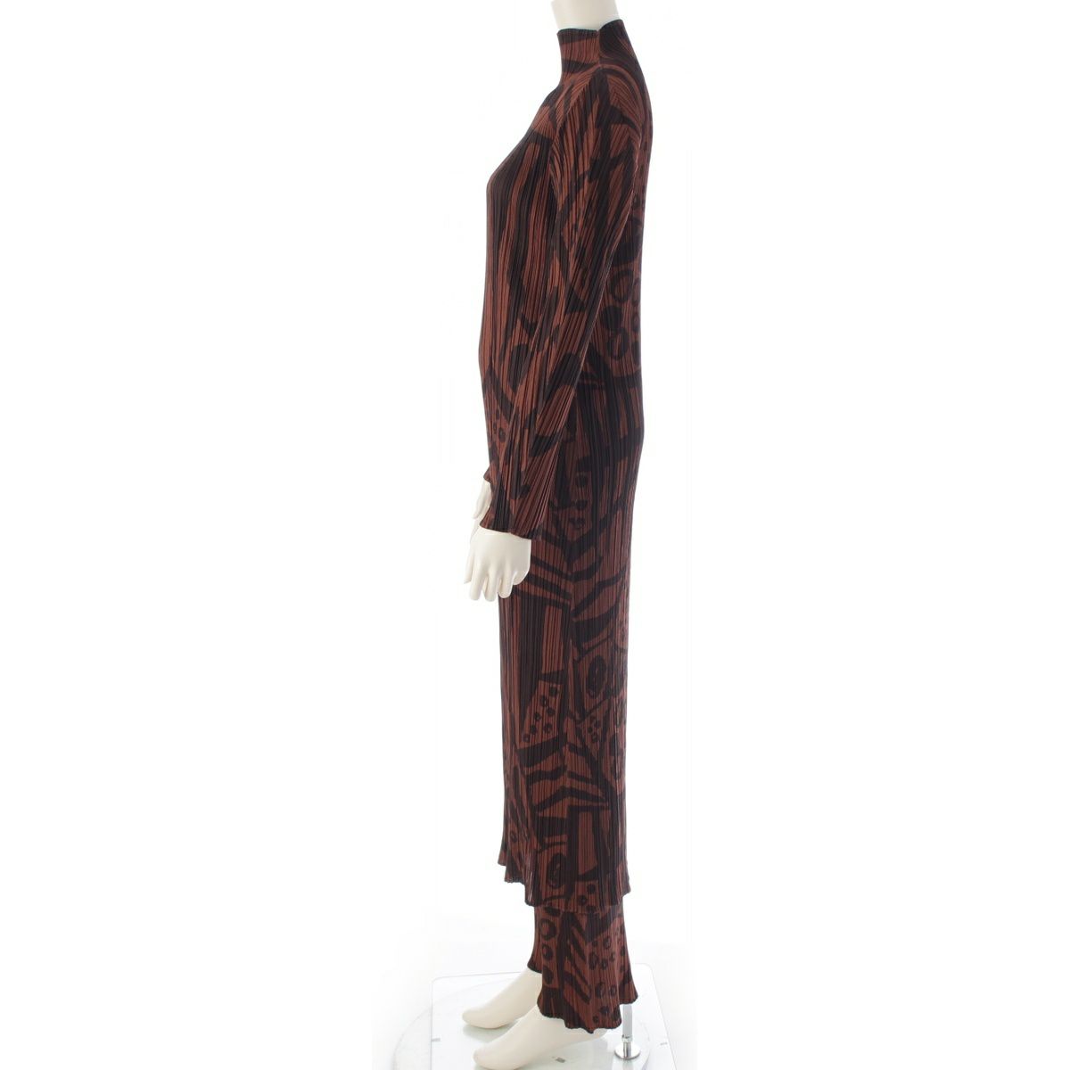 プリーツプリーズ イッセイミヤケ グラフィックプリント 総柄 ボトルネック ワンピースセットアップ パンツ PP33-JH747/PP33-JF744 ブラウン ブラック 4