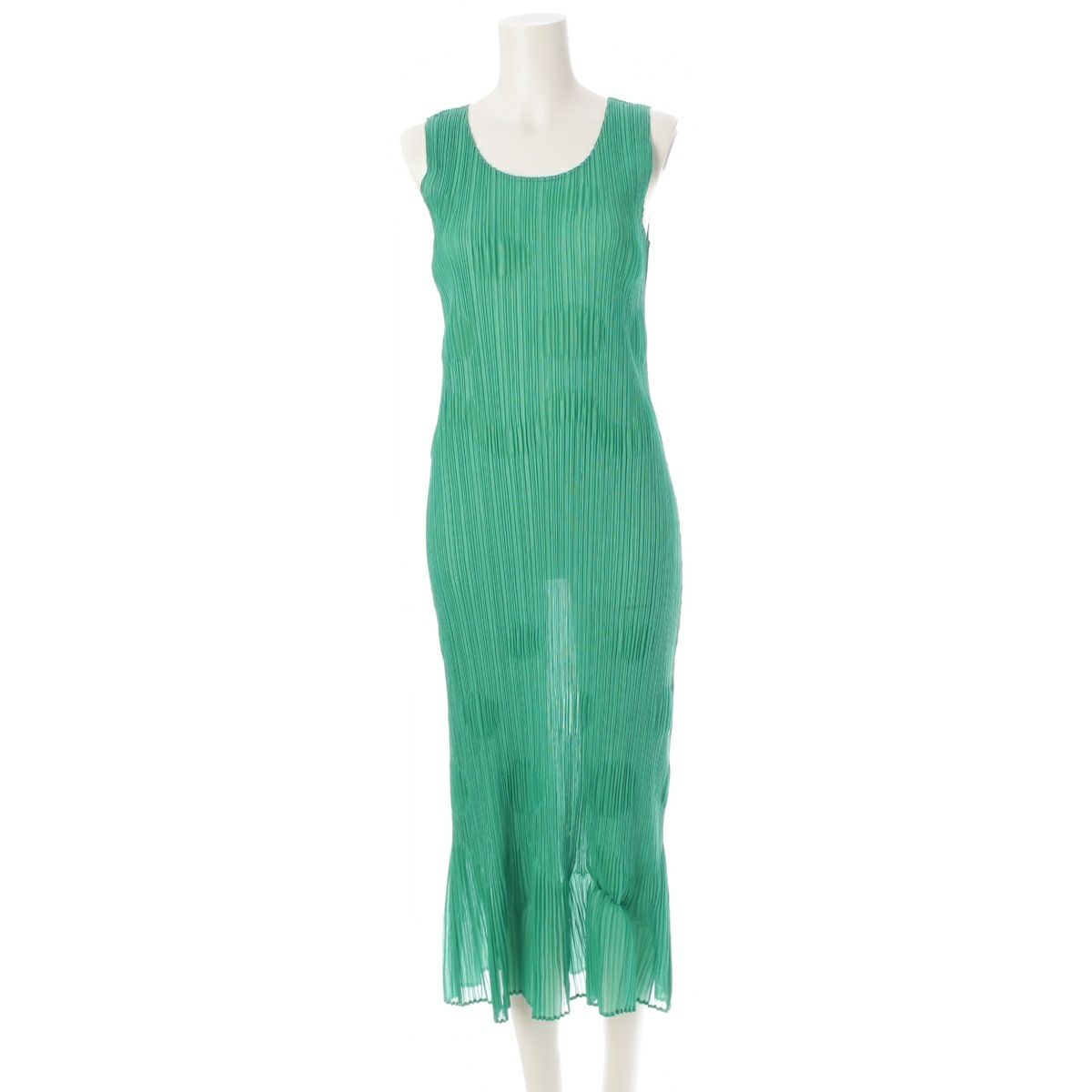 プリーツプリーズ イッセイミヤケ ドットデザイン ノースリーブ ワンピース ドレス PP81-JH797 グリーン系 4