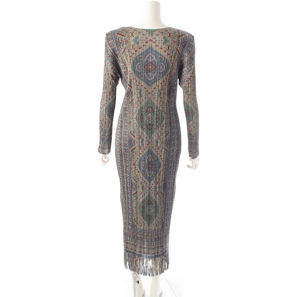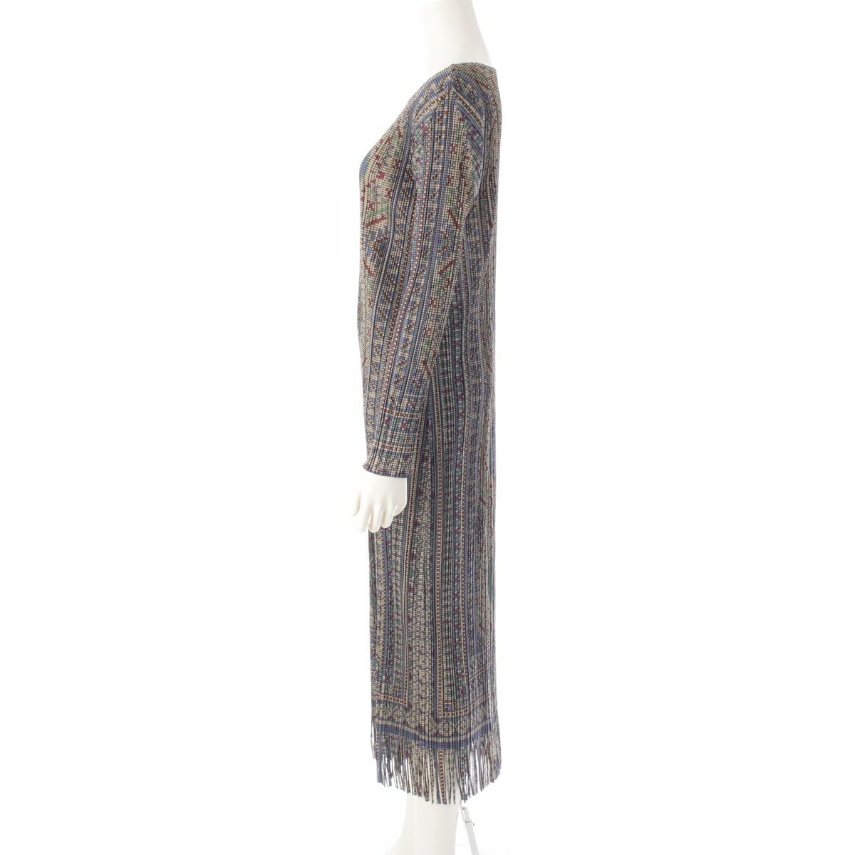 プリーツプリーズ イッセイミヤケ キリム 総柄 フリンジデザイン クルーネック ワンピース ドレス PP63-JH714 マルチカラー 5