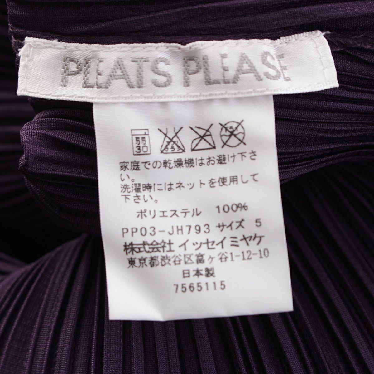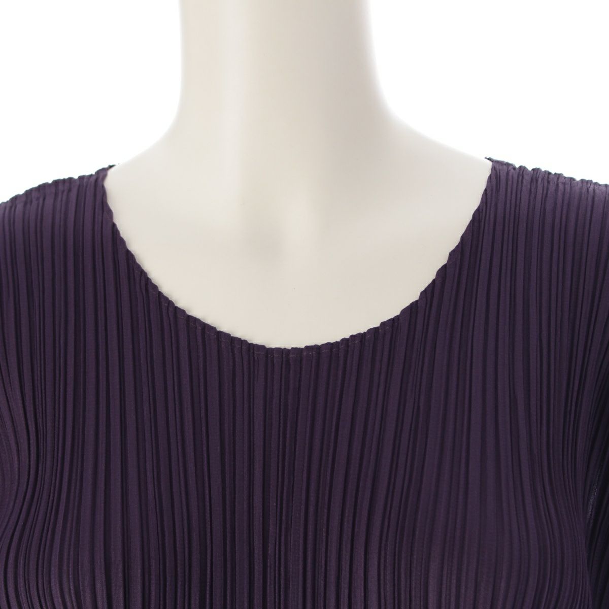 プリーツプリーズ イッセイミヤケ 箔プリント 長袖 変形 ロング ワンピース クルーネック ドレス PP03-JH793 パープル 5