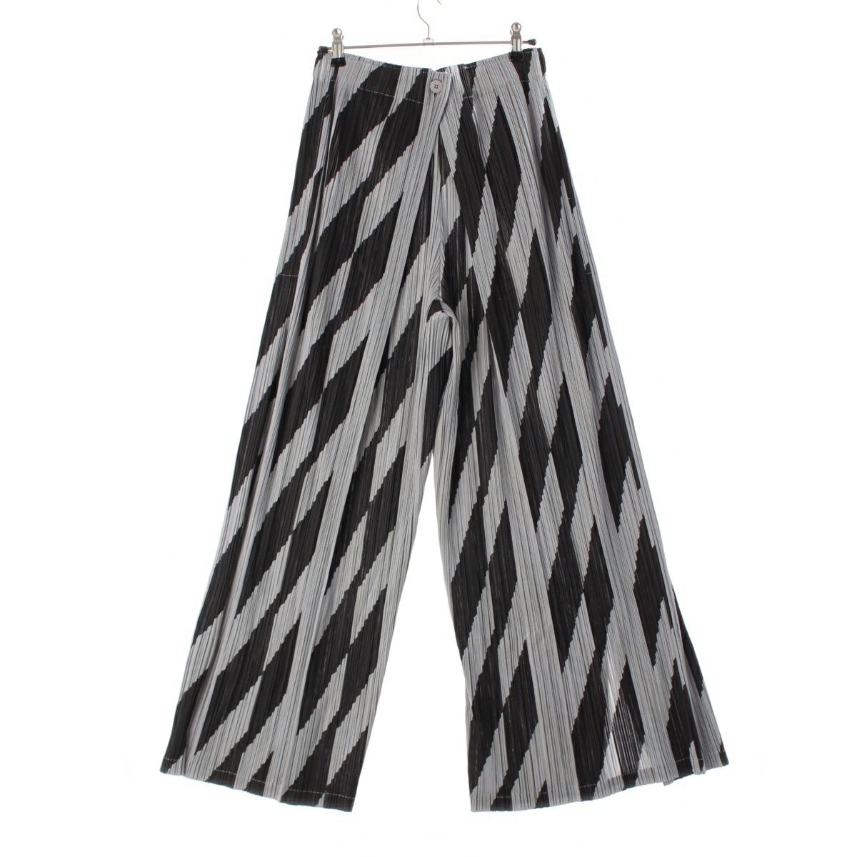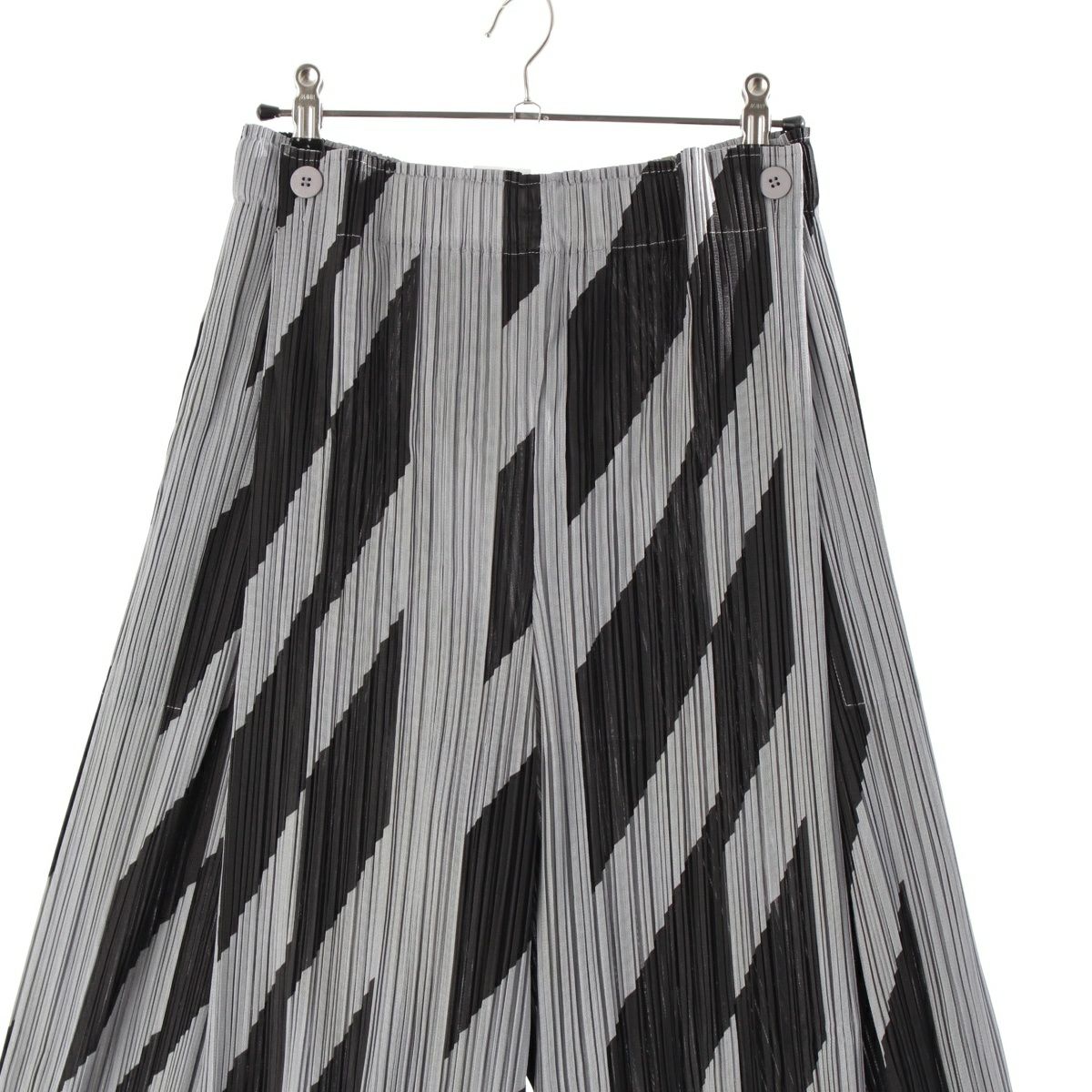 プリーツプリーズ イッセイミヤケ 19年 斜め チェック柄 パンツ ボトムス PP93-JF665 グレー ブラック 5
