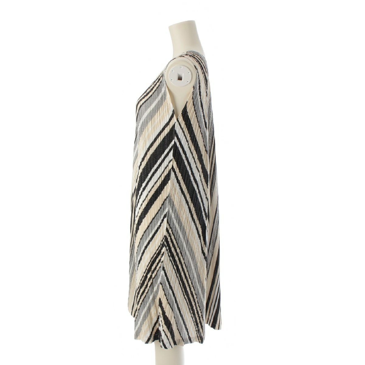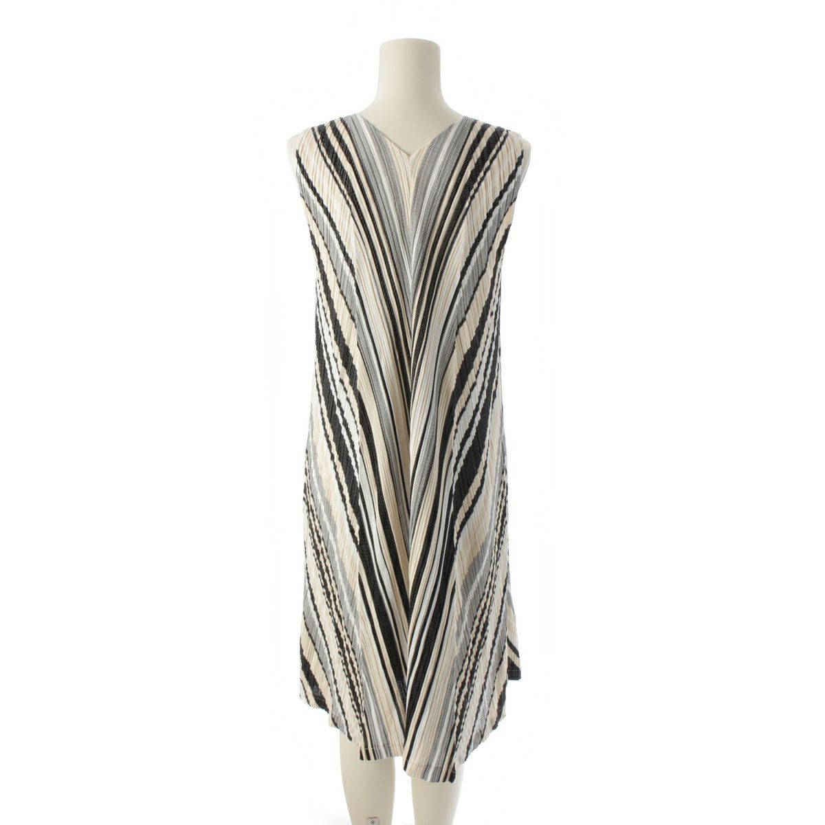 プリーツプリーズ イッセイミヤケ コットン ストライプ ノースリーブ Vネック ワンピース PP61-JH646 ブラック アイボリー 4