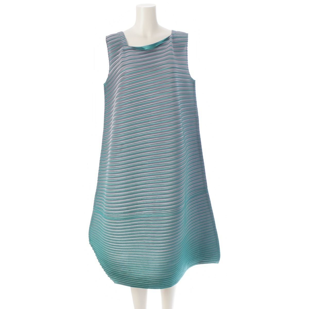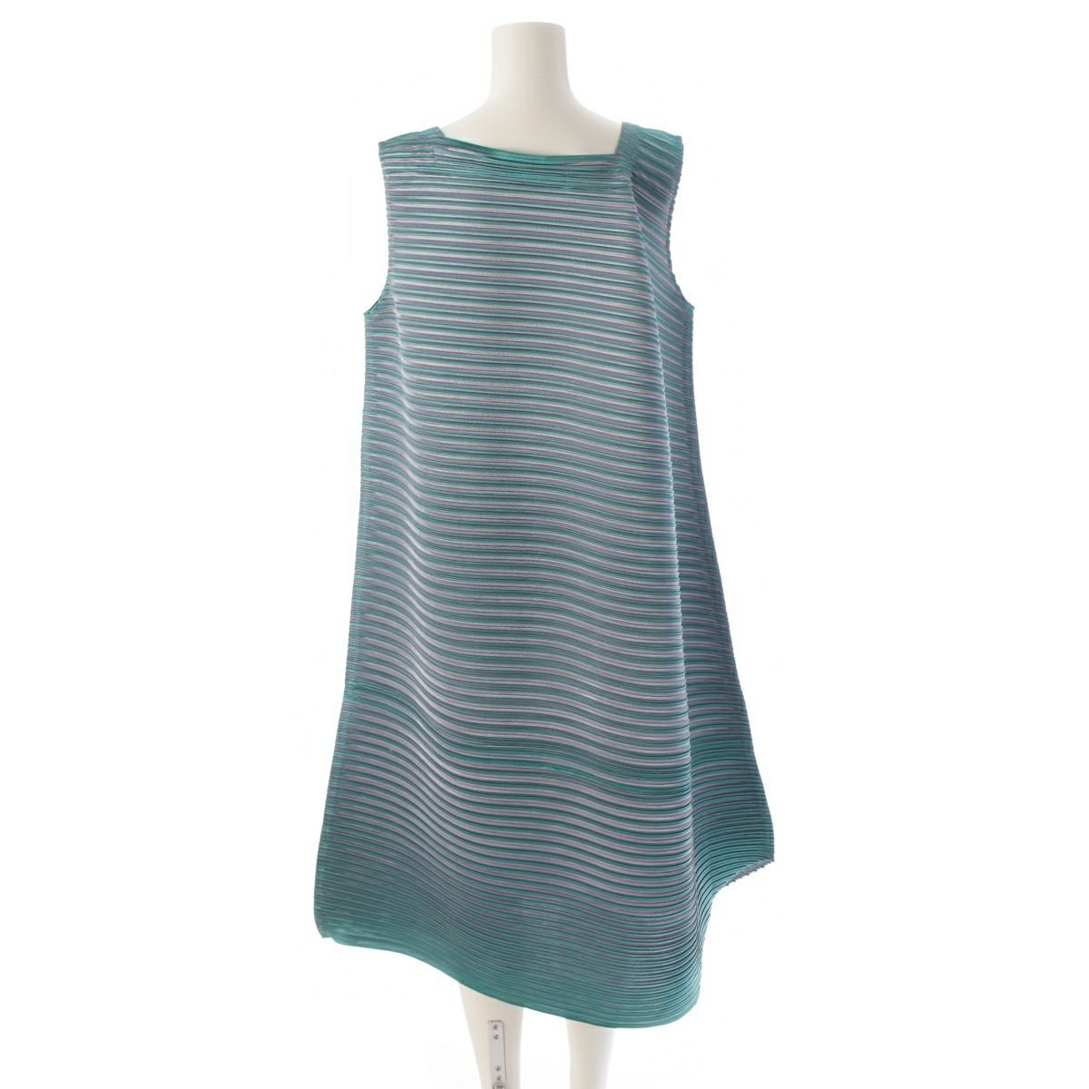プリーツプリーズ イッセイミヤケ 斜めプリーツ バウンス ノースリーブ ワンピース PP63-JH696 グリーン グレー 5