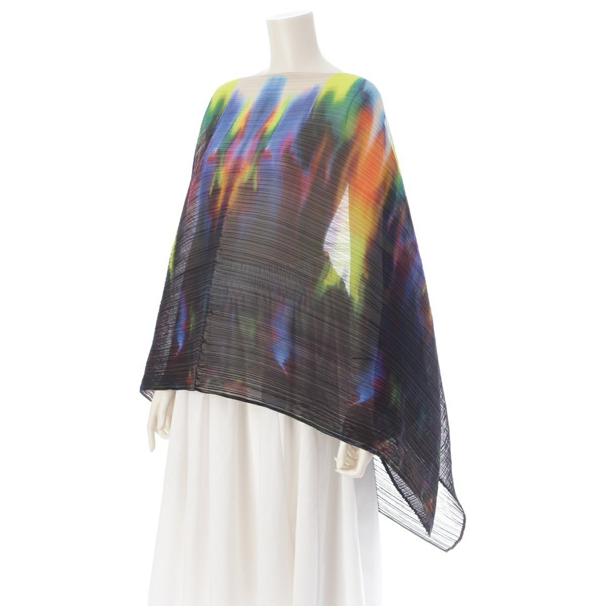 プリーツプリーズ イッセイミヤケ レインボー グラフィック ポンチョ ケープ PP54-AD321 マルチカラー