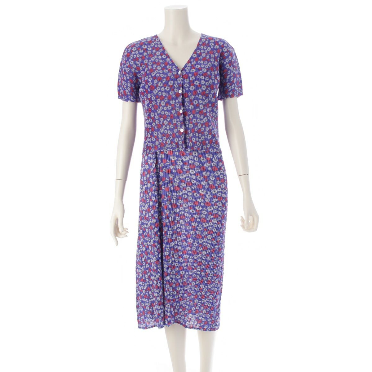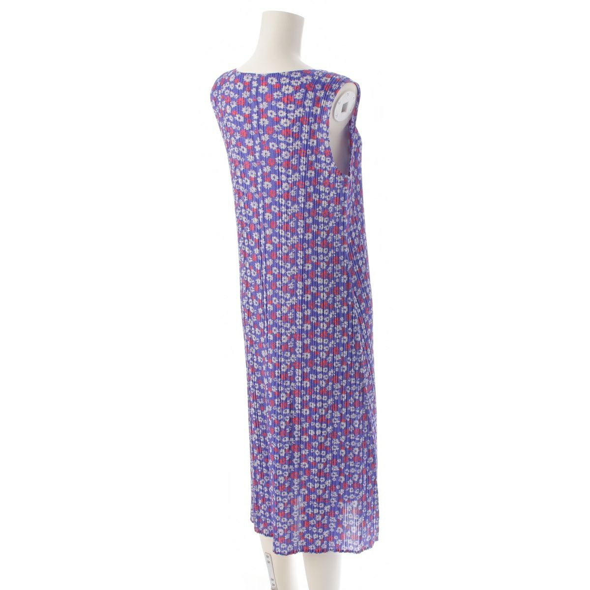 プリーツプリーズ イッセイミヤケ 2002年 花柄 ノースリーブ ロング ワンピースセットアップ PP22-JH875 ブルー 4