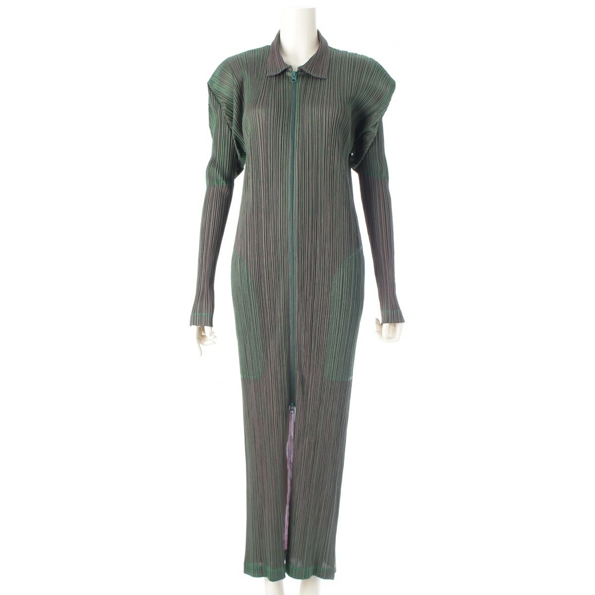 プリーツプリーズ ジップアップ ロング カーディガン ワンピース 長袖 PP14-JA575 グリーン ピンク 5