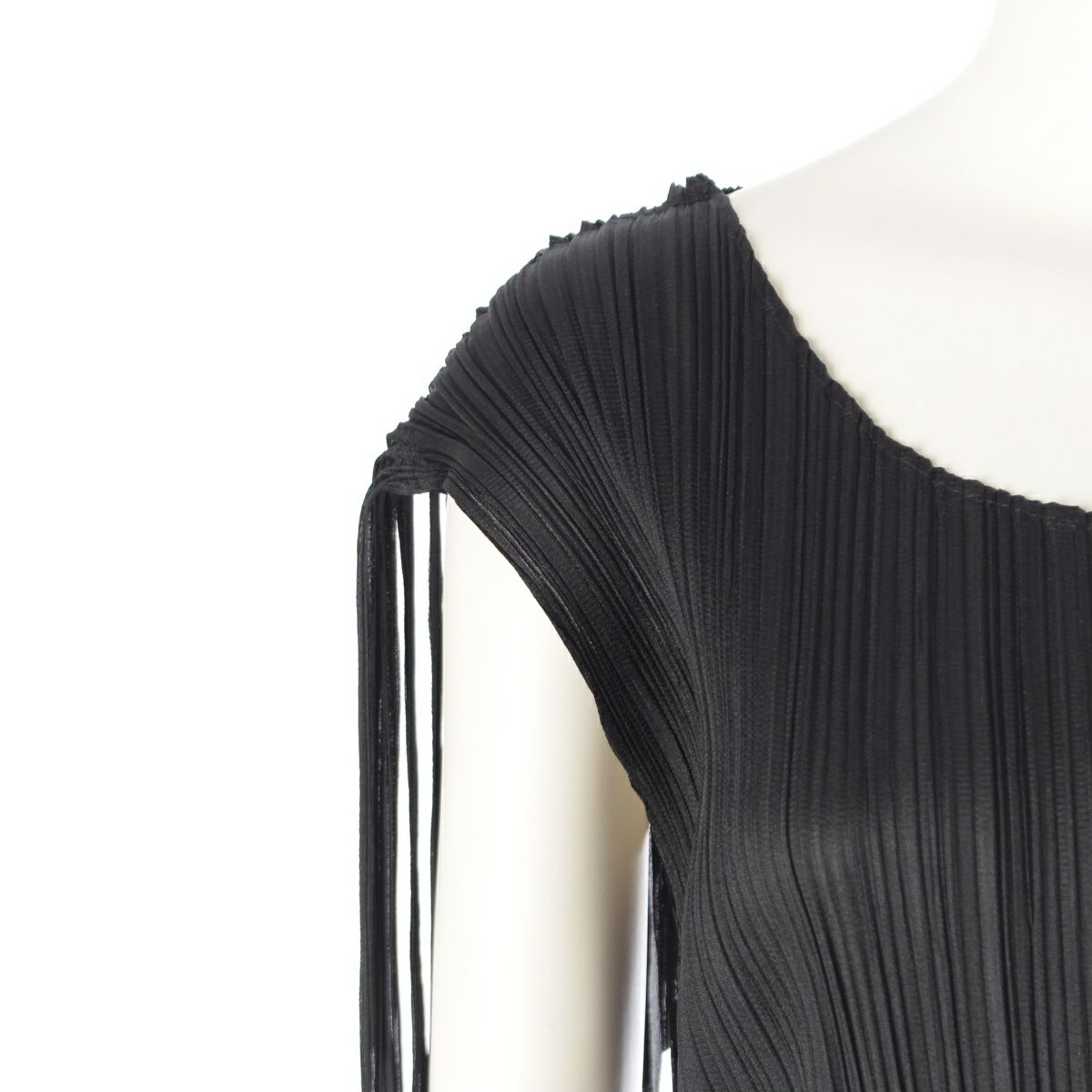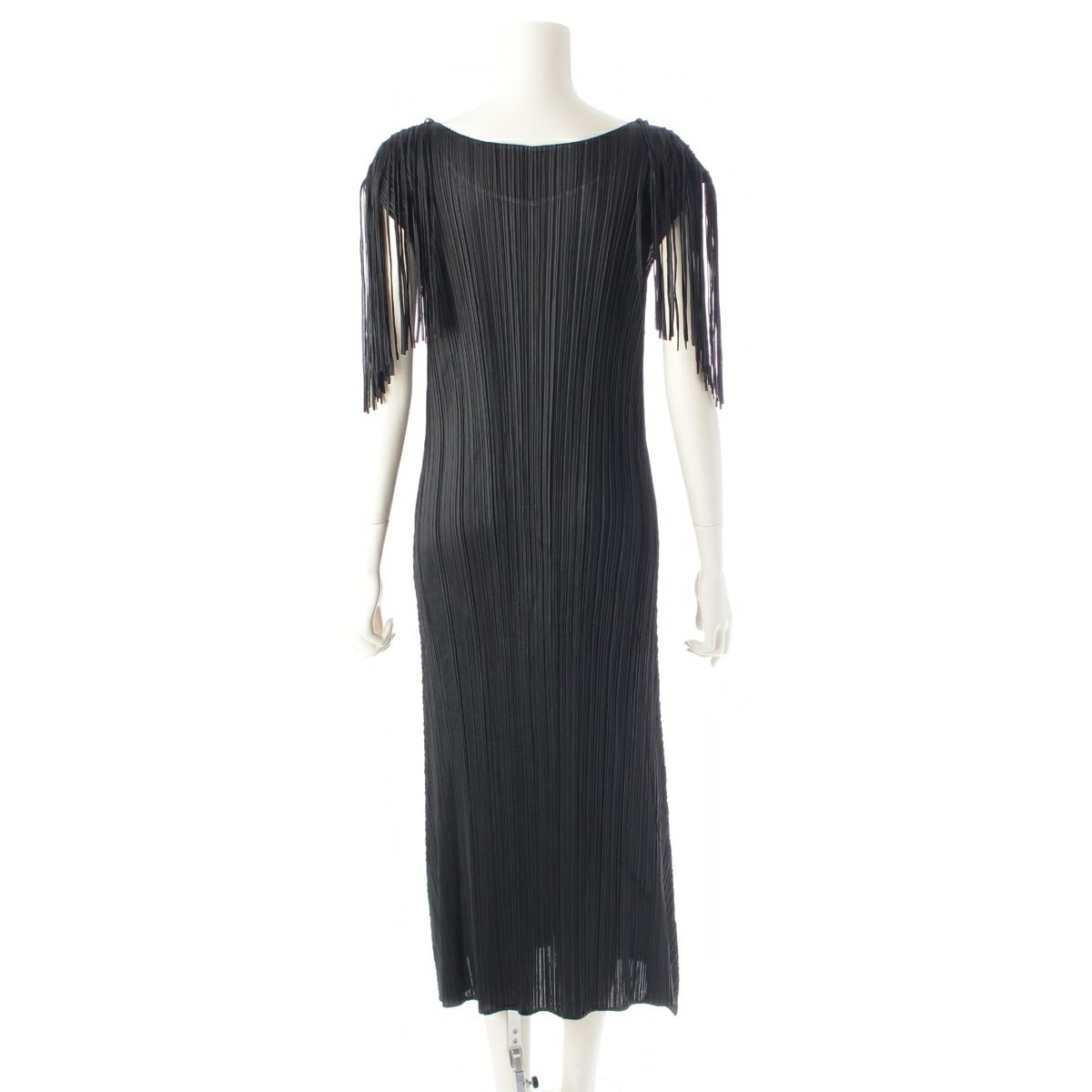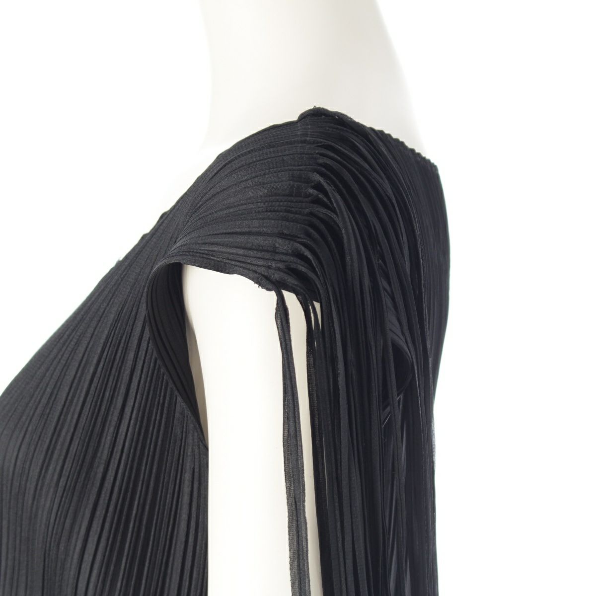 プリーツプリーズ イッセイミヤケ フリンジデザイン ロング ノースリーブ ワンピース ドレス PP41-JH636 ブラック 5