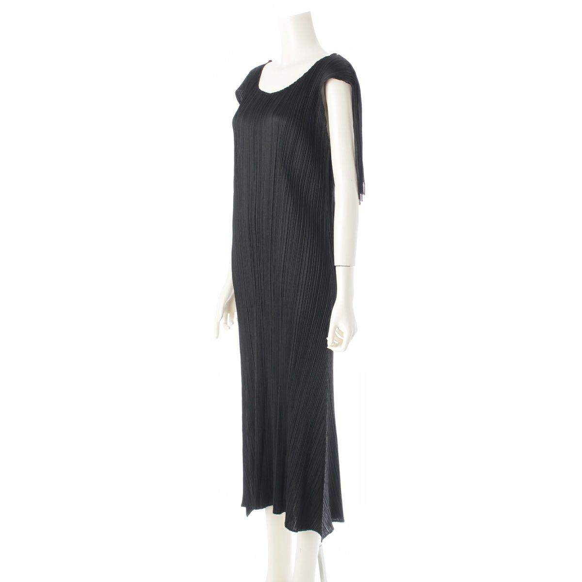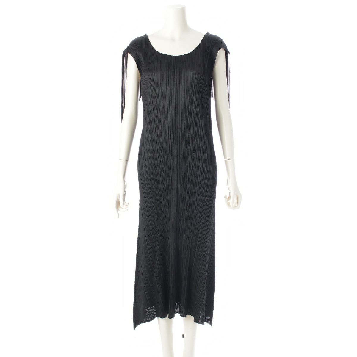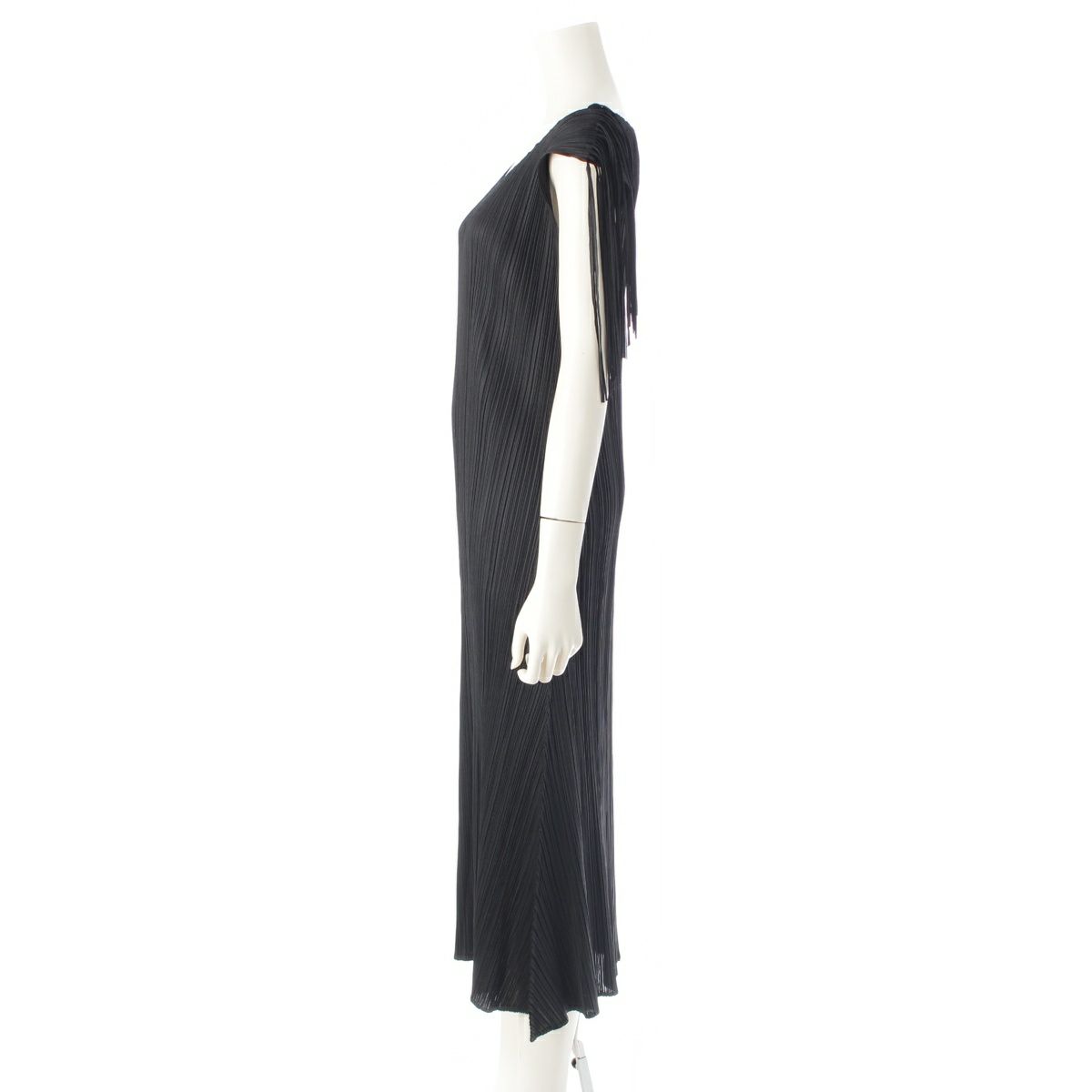 プリーツプリーズ イッセイミヤケ フリンジデザイン ロング ノースリーブ ワンピース ドレス PP41-JH636 ブラック 5