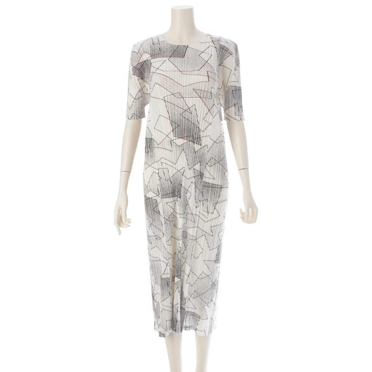 プリーツプリーズ イッセイミヤケ 2019 総柄 半袖 ワンピース ドレス PP91-JH756 ブラック ホワイト 3