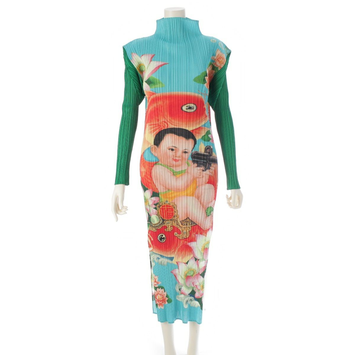 プリーツプリーズ イッセイミヤケ 1998 S/S 銃 赤ちゃん 金魚柄 ワンピース ドレス PP81-JH988 マルチカラー 3