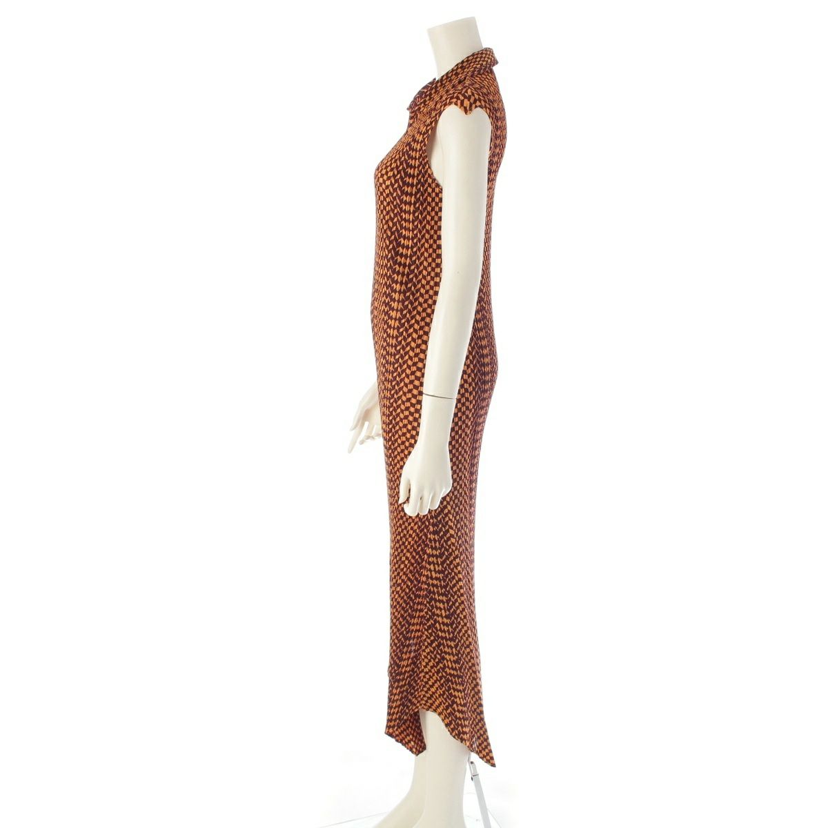 プリーツプリーズ イッセイミヤケ チェック柄 襟付き ノースリーブ ロング ワンピース ドレス PP43-JH665 オレンジ×ブラウン 5