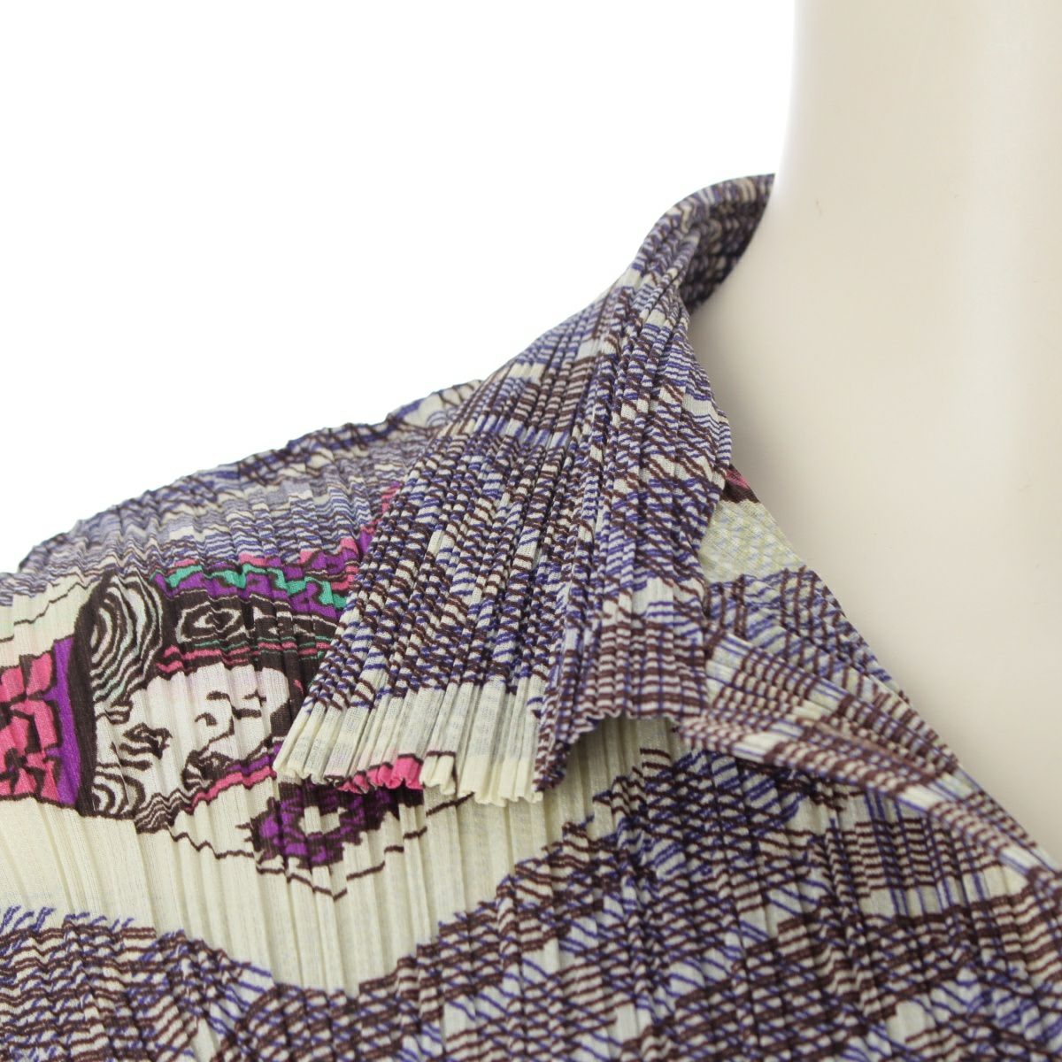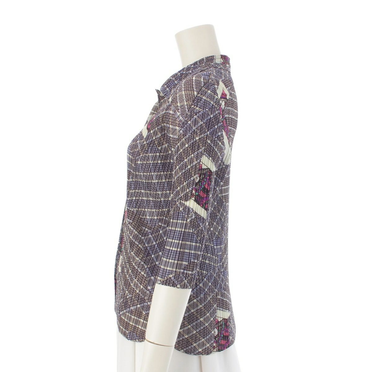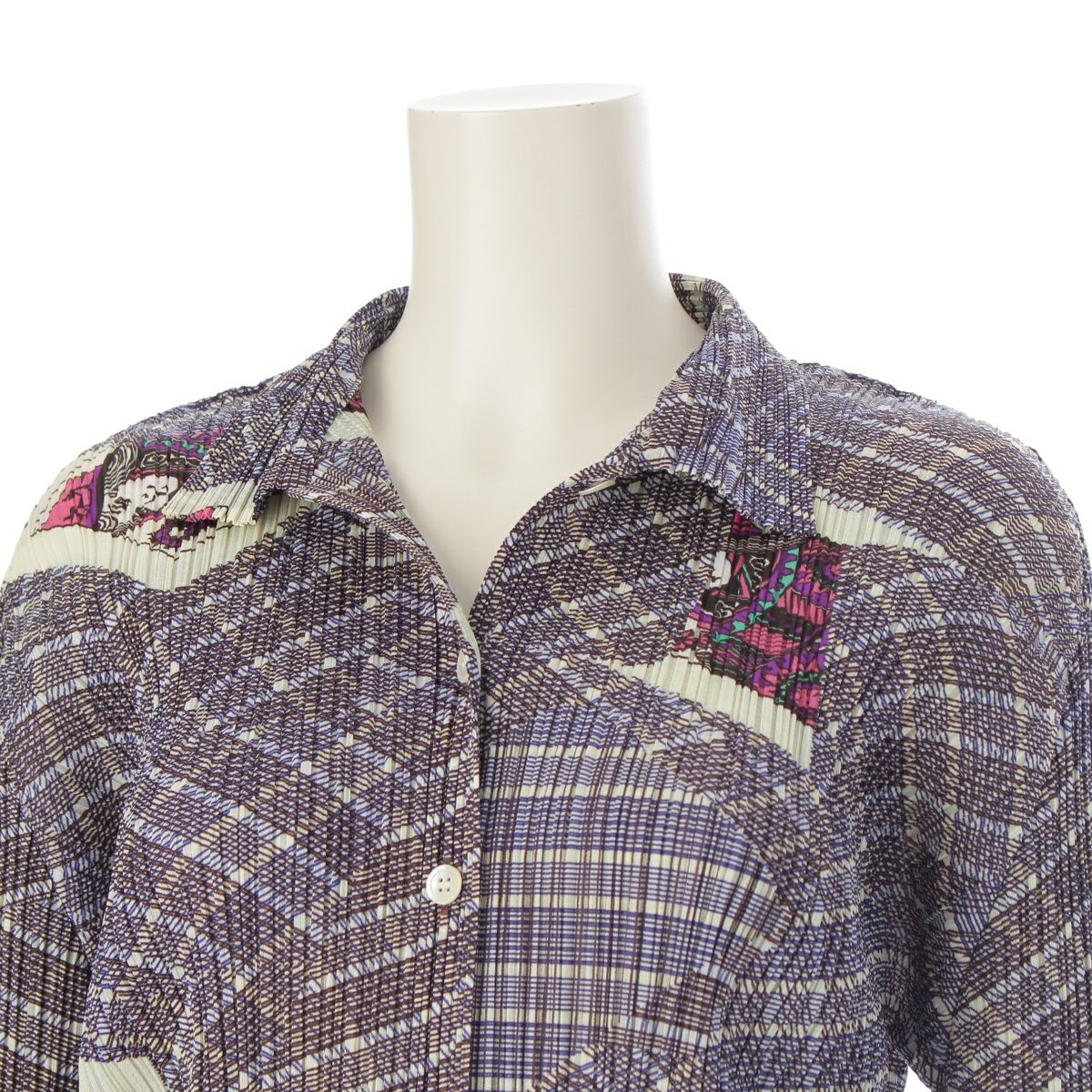プリーツプリーズ イッセイミヤケ トランプ柄 七分袖 ブラウス シャツ トップス PP73-JJ793 ブルー系 マルチカラー 4
