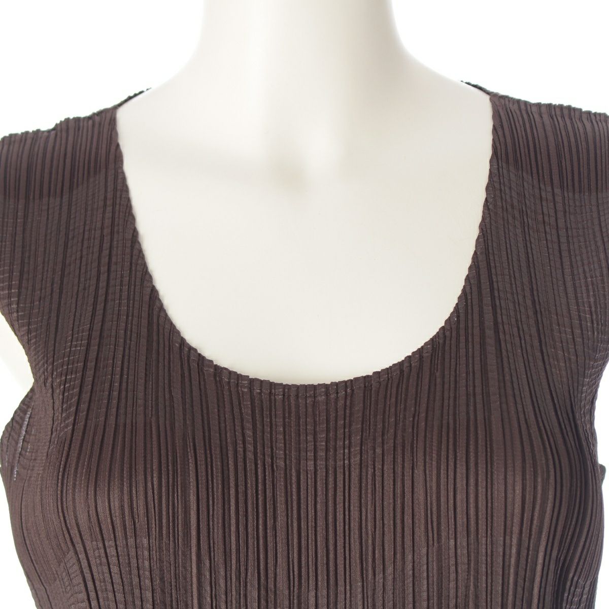 プリーツプリーズ イッセイミヤケ 99AW ラインデザイン ノースリーブ ロング ワンピース ドレス PP94-JH632 チョコレート ブラウン 4