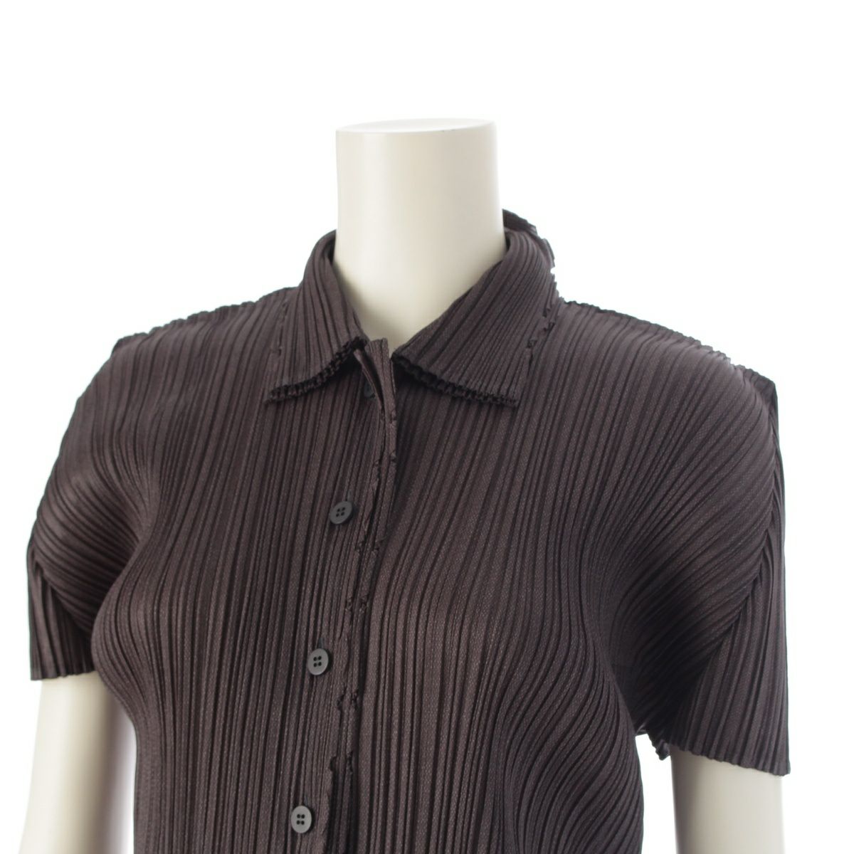 プリーツプリーズ イッセイミヤケ ギザギザカッティング 半袖シャツ ブラウス PP51-JJ692 チャコールグレー 3