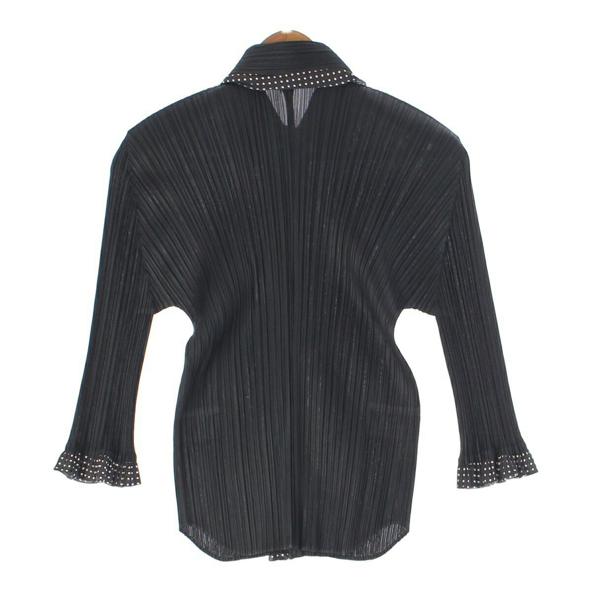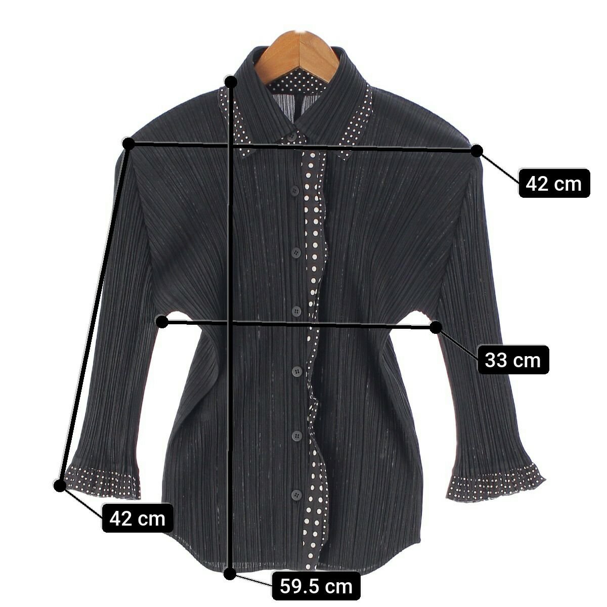 プリーツプリーズ イッセイミヤケ ドット フリル ロングスリーブ シャツ ブラウス トップス PP43-JJ672 ブラック 3【中古】【正規品保証】
