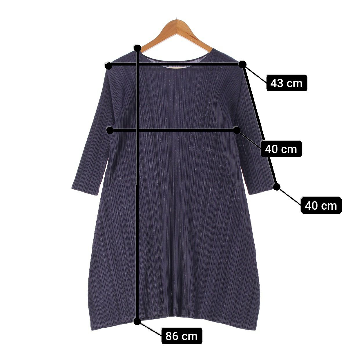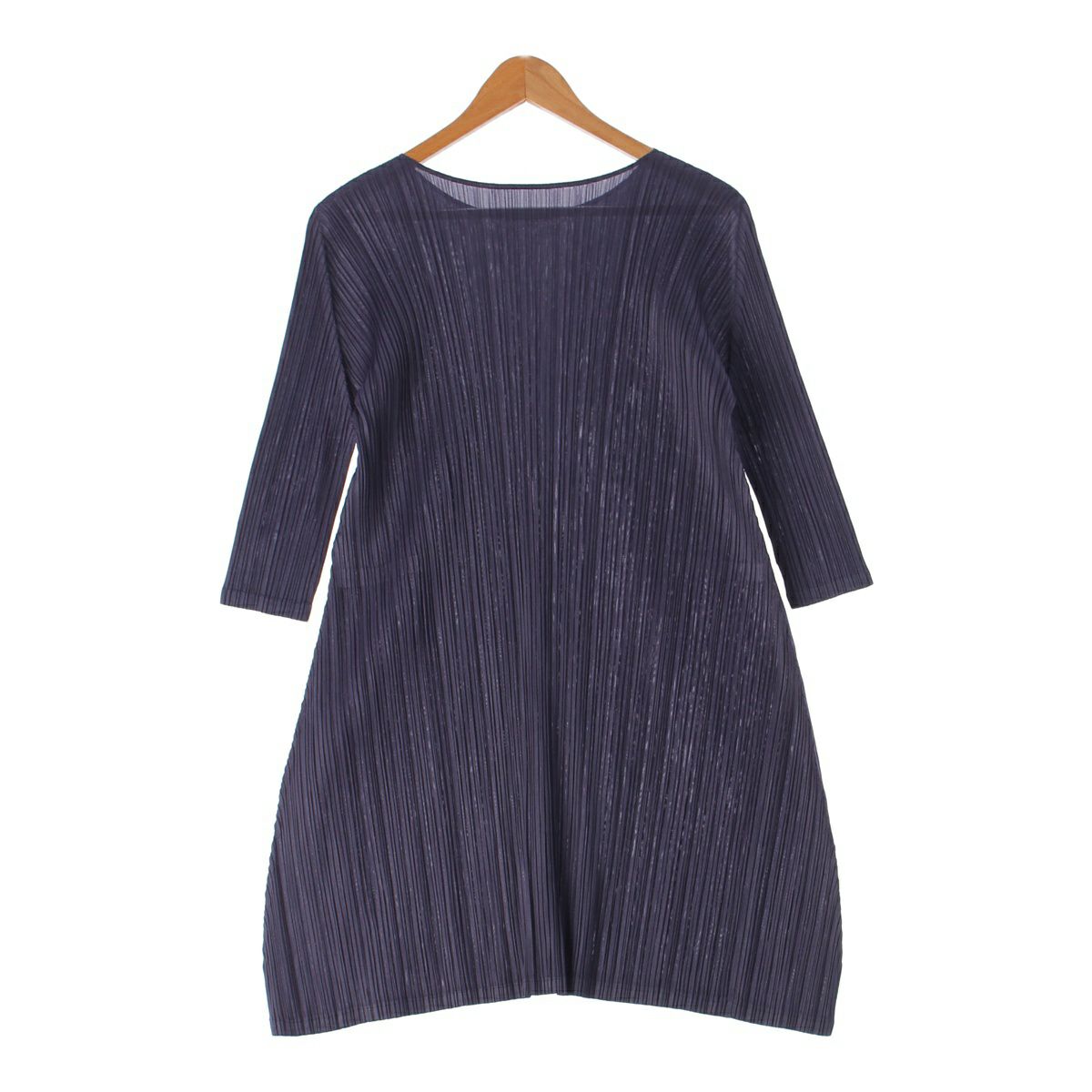 プリーツプリーズ イッセイミヤケ 17AW クルーネック プリーツ 七分袖 ワンピース PP73-JH185 ネイビー 2