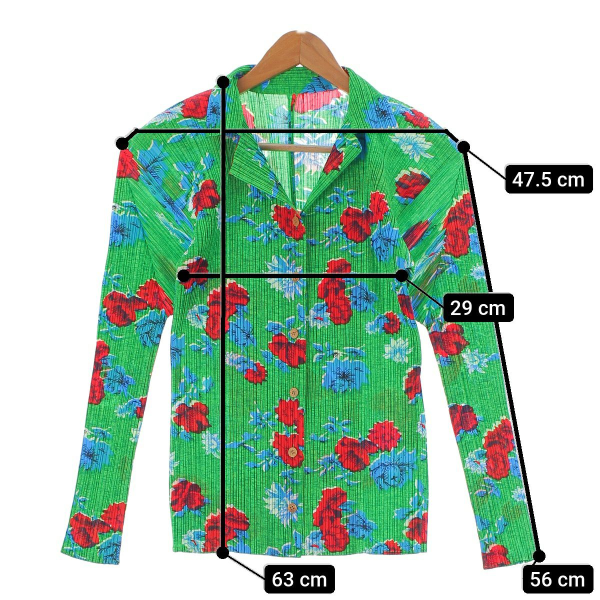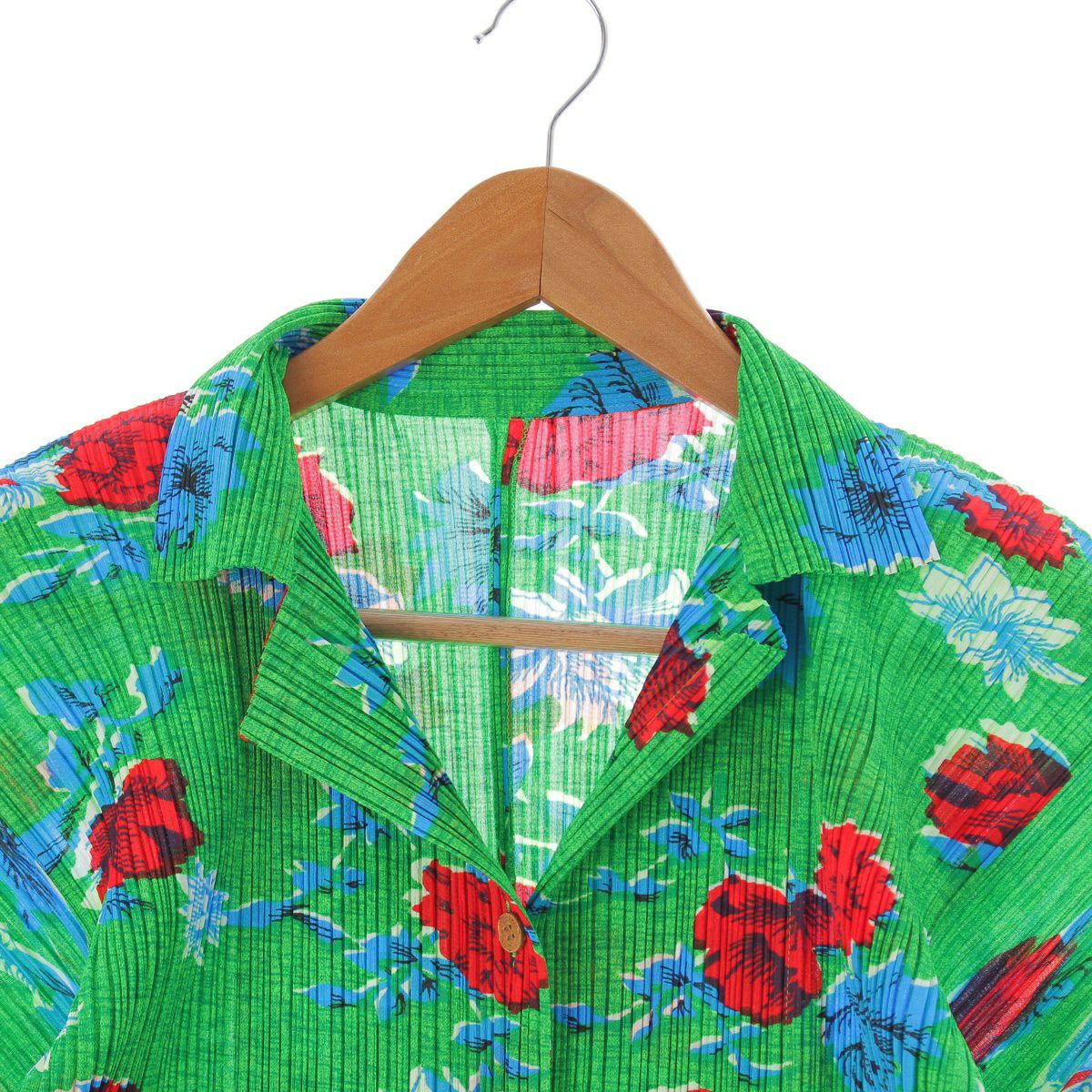 プリーツプリーズ イッセイミヤケ ポリエステル 花柄 総柄 長袖シャツ PP72-JK524 グリーン系マルチカラー 3