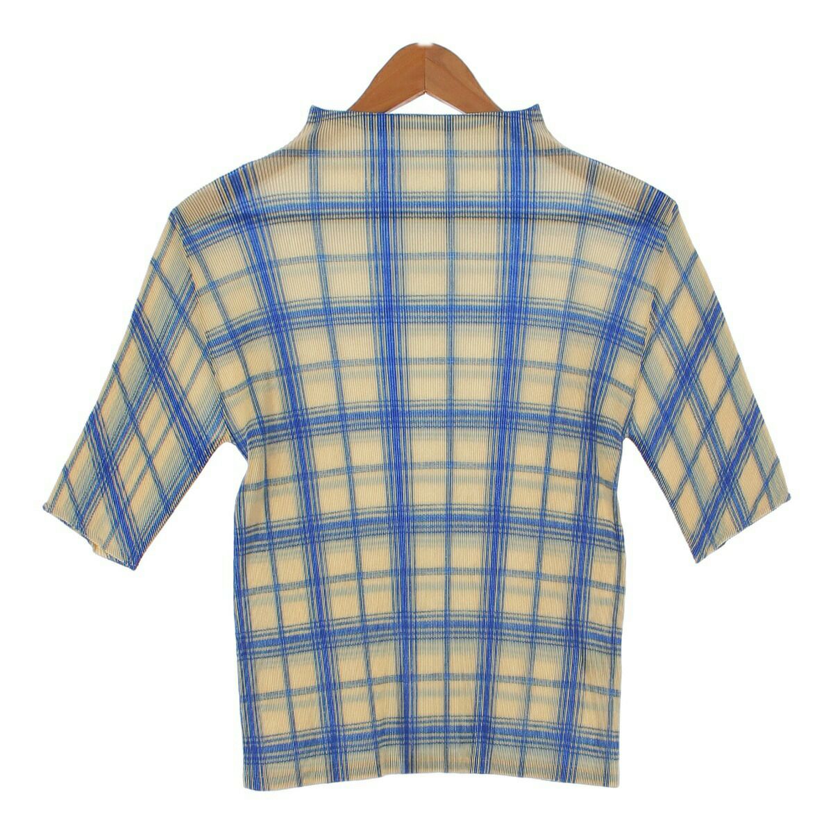 プリーツプリーズ イッセイミヤケ ボトルネック チェック柄 七分丈 半袖シャツ トップス カットソー PP91FK313 ベージュ ブルー 3