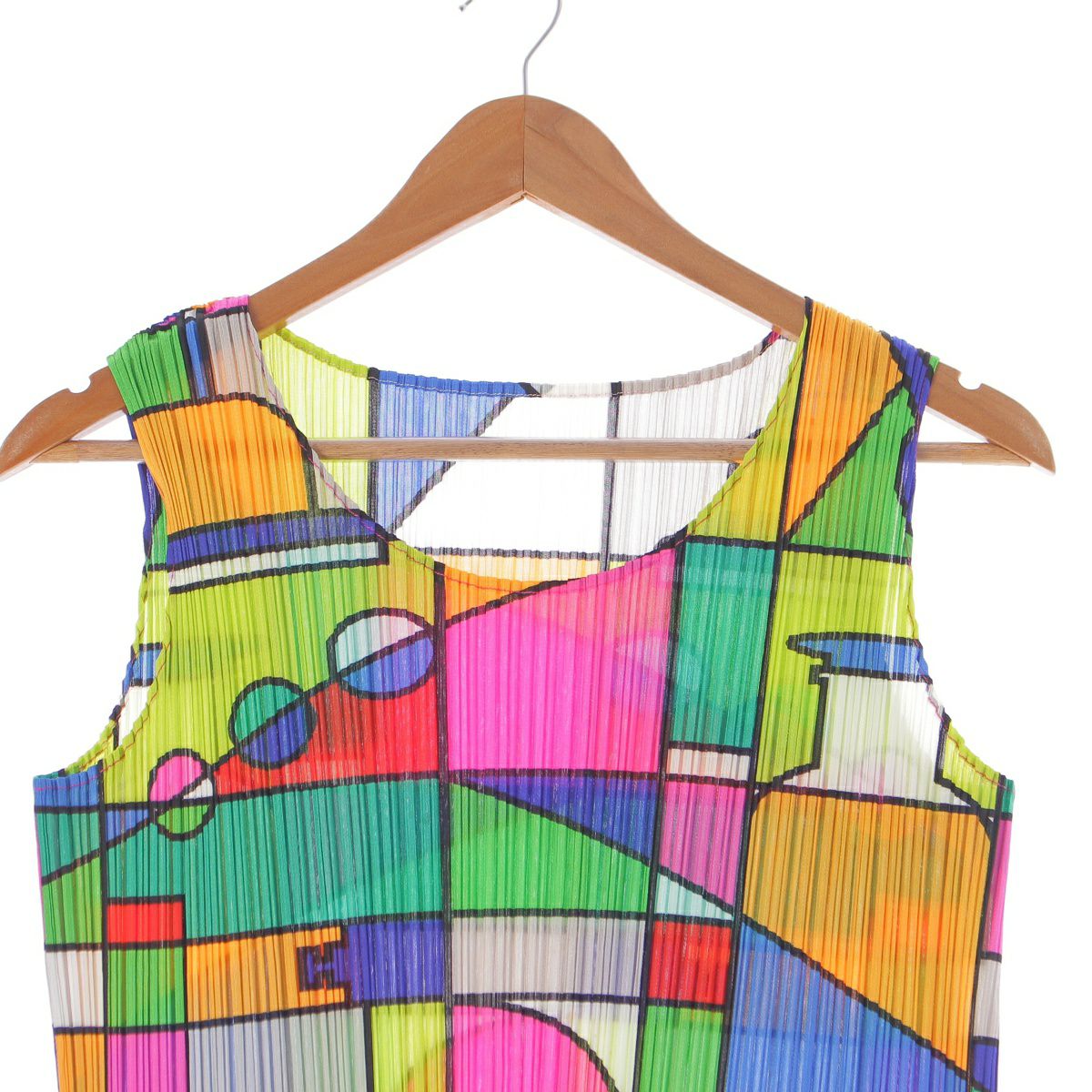 プリーツプリーズ イッセイミヤケ 08年 ノースリーブ 幾何学 総柄 タンクトップ トップス PP81‐JK631 マルチカラー 3