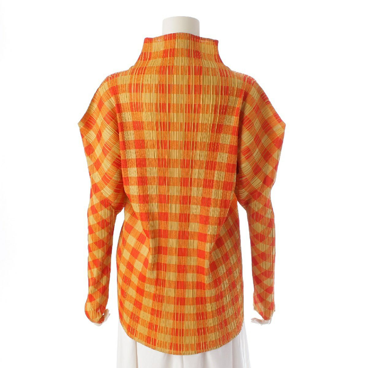 プリーツプリーズ イッセイミヤケ 転写プリント チェック 長袖タートルネック 長袖Tシャツ PP54-JK604 オレンジ 4