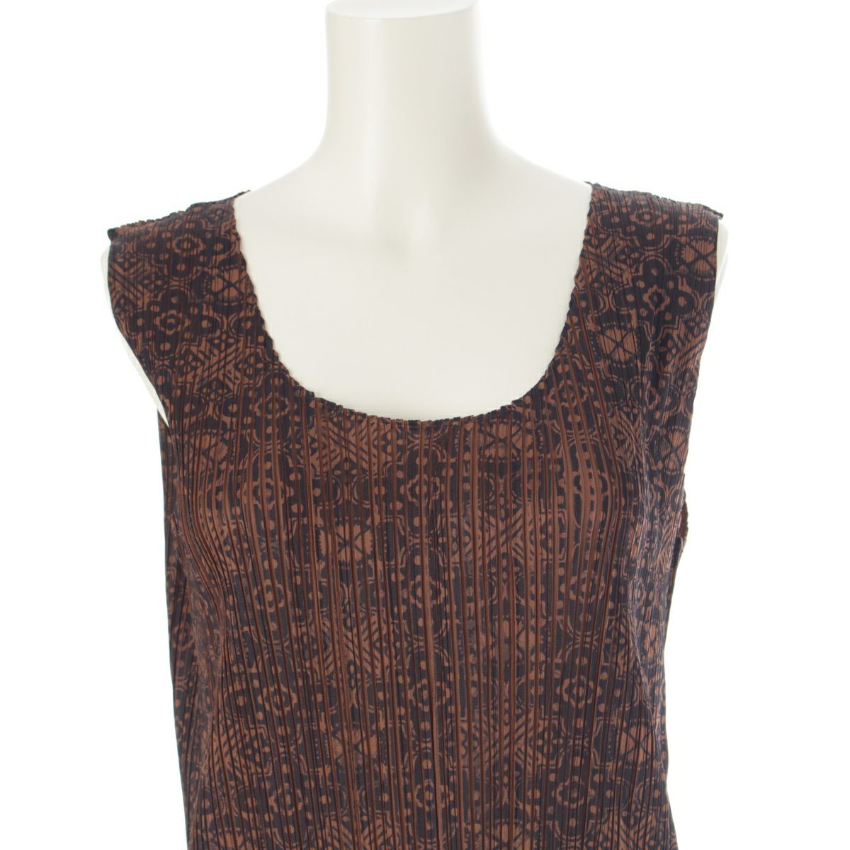 プリーツプリーズ イッセイミヤケ 総柄 ノースリーブ ミニ丈 ワンピース ドレス PP72-JH819 ブラウン ブラック 4