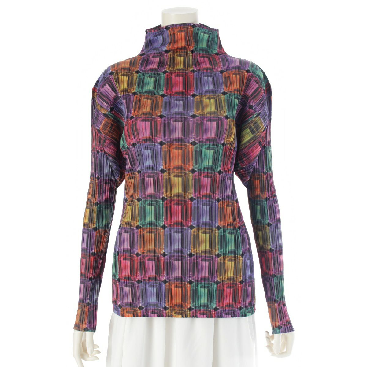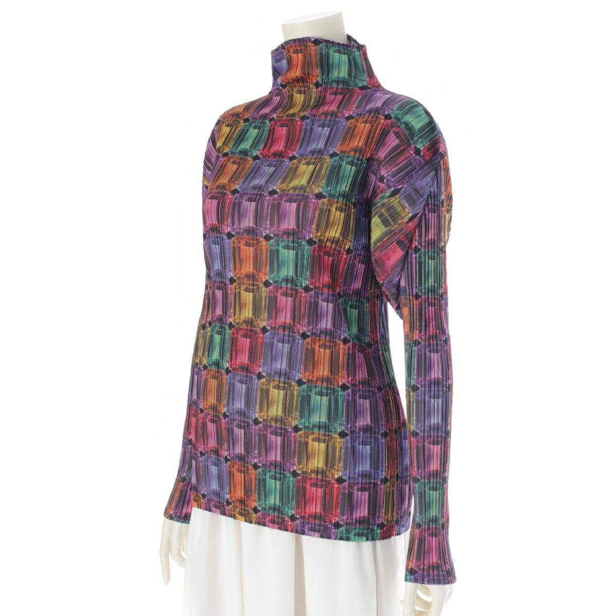 プリーツプリーズ イッセイミヤケ 宝石総柄 長袖 ボトルネック カットソー トップス PP73-JK804 マルチカラー 3