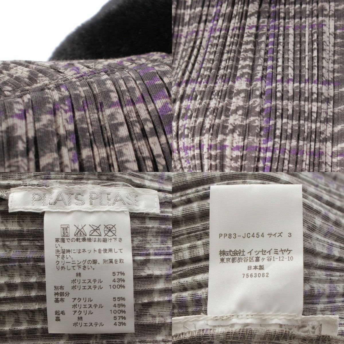 プリーツプリーズ イッセイミヤケ PLEATS PLEASE ISSEY チェック ライトアウター ジャケット ファー切替 PP83-JC454 パープル×グレー 3