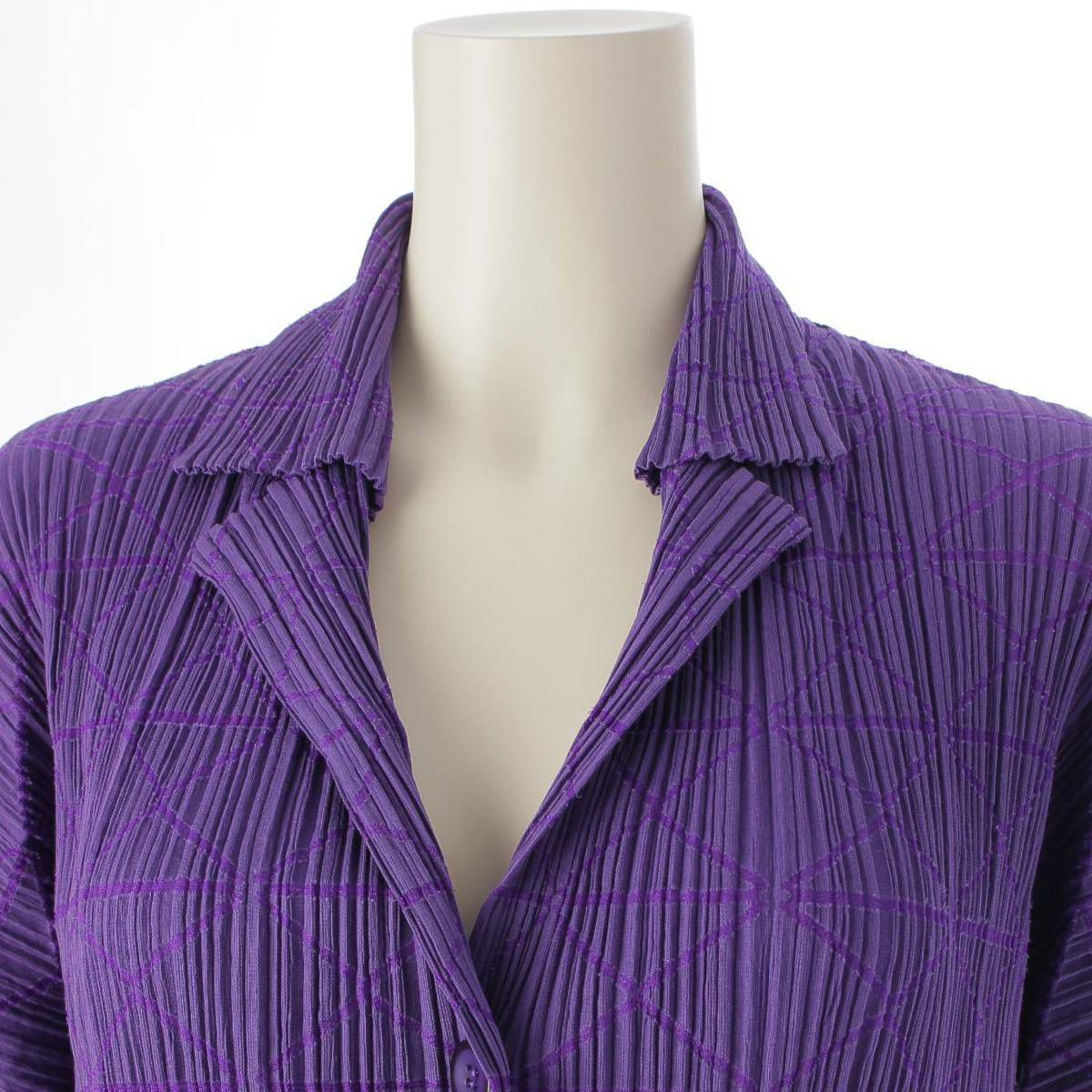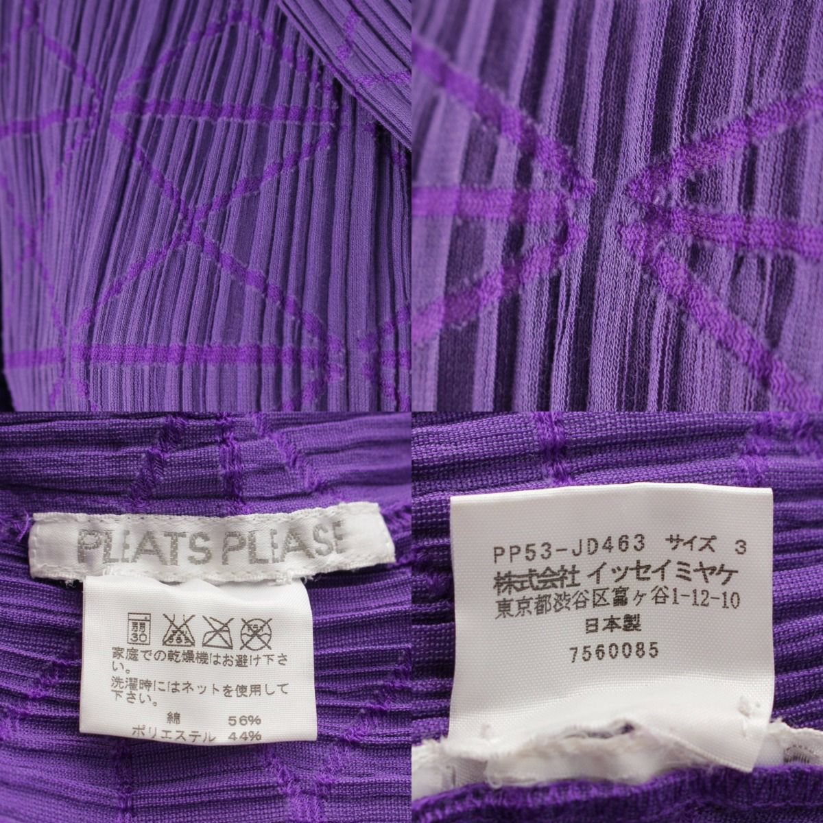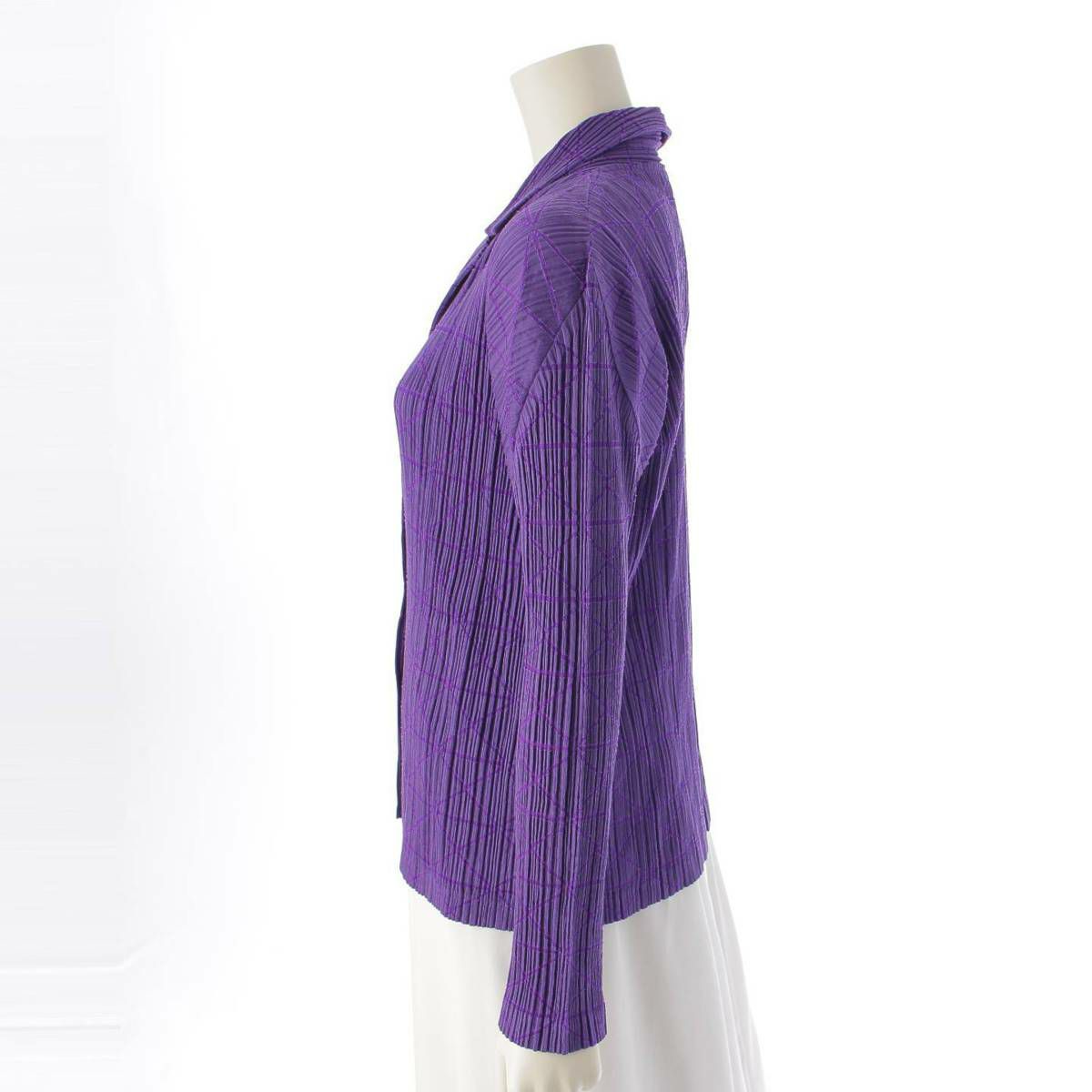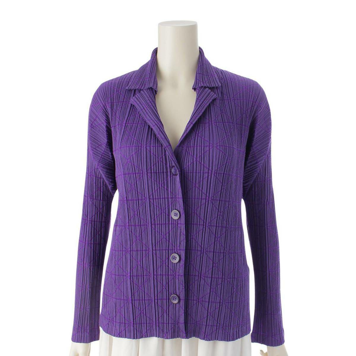 プリーツプリーズ イッセイミヤケ 透かし テーラードジャケット トップス シャツ PP53-JD463 パープル 3