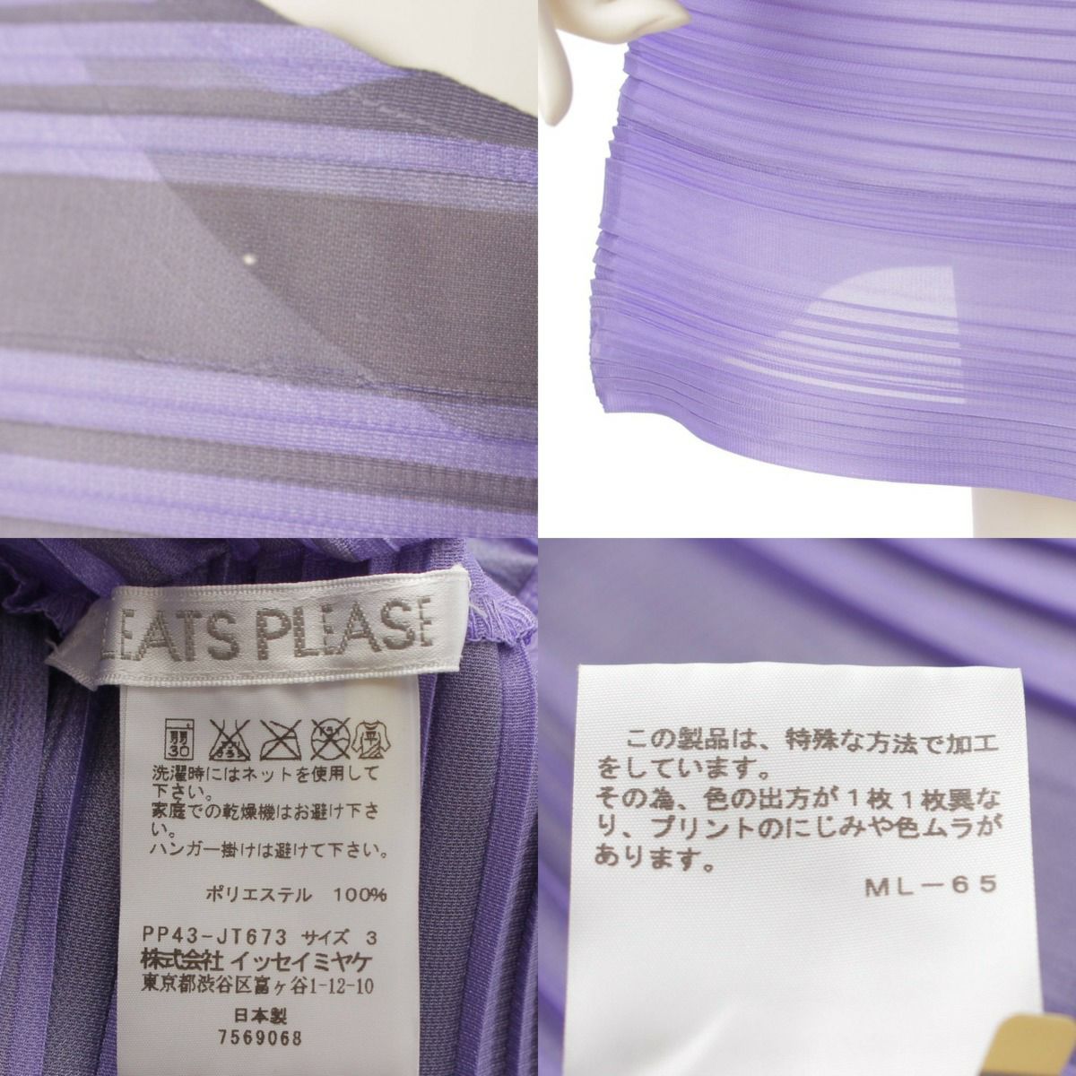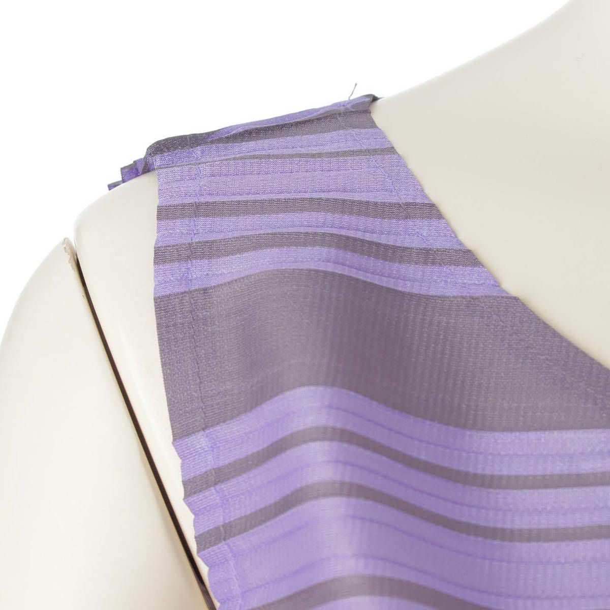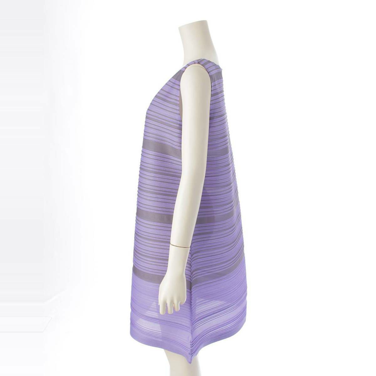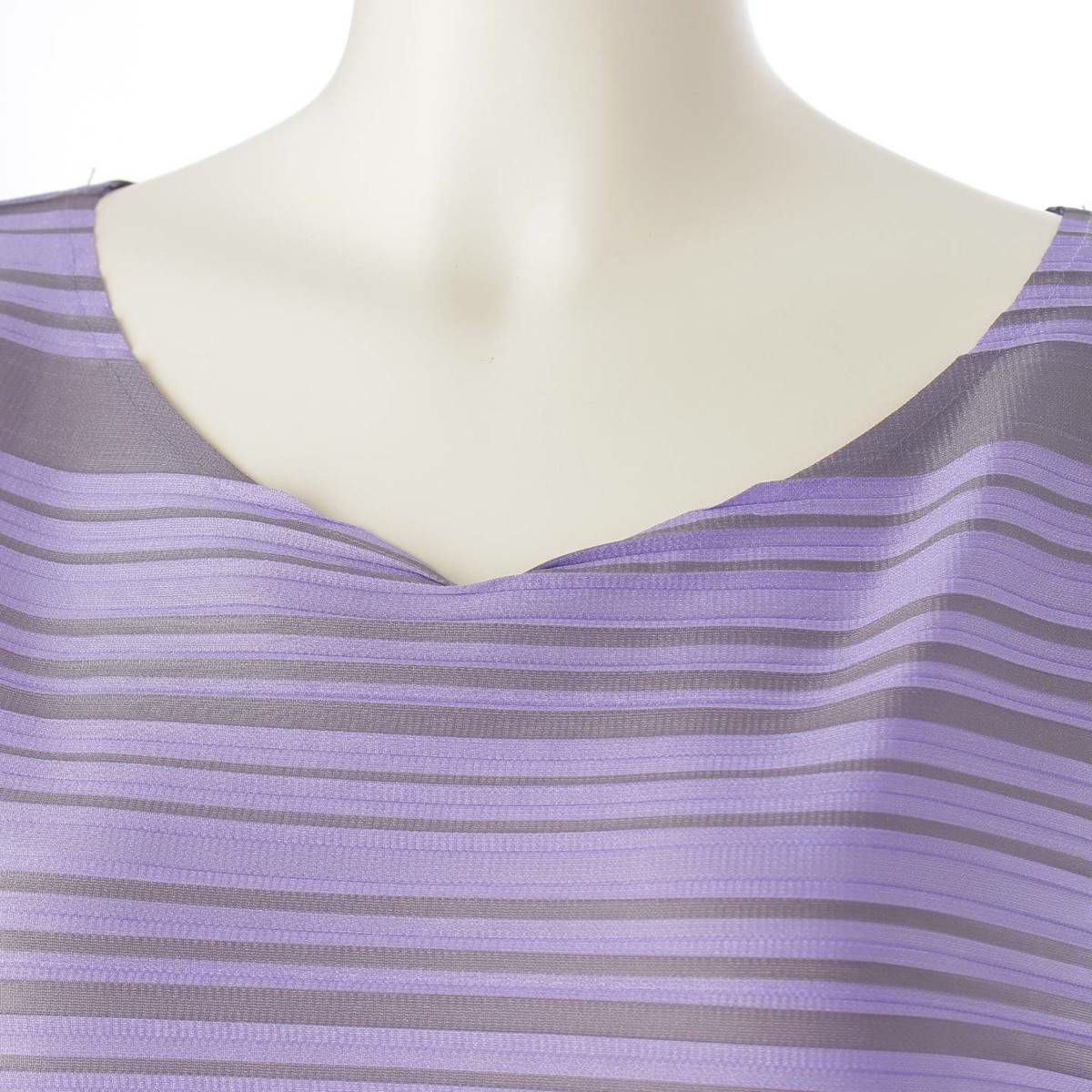 プリーツプリーズ イッセイミヤケ PLEATS PLEASE ISSEY プリーツ ボーダー ノースリーブ ワンピース ドレス PP43‐JT673 パープル×グレー 3