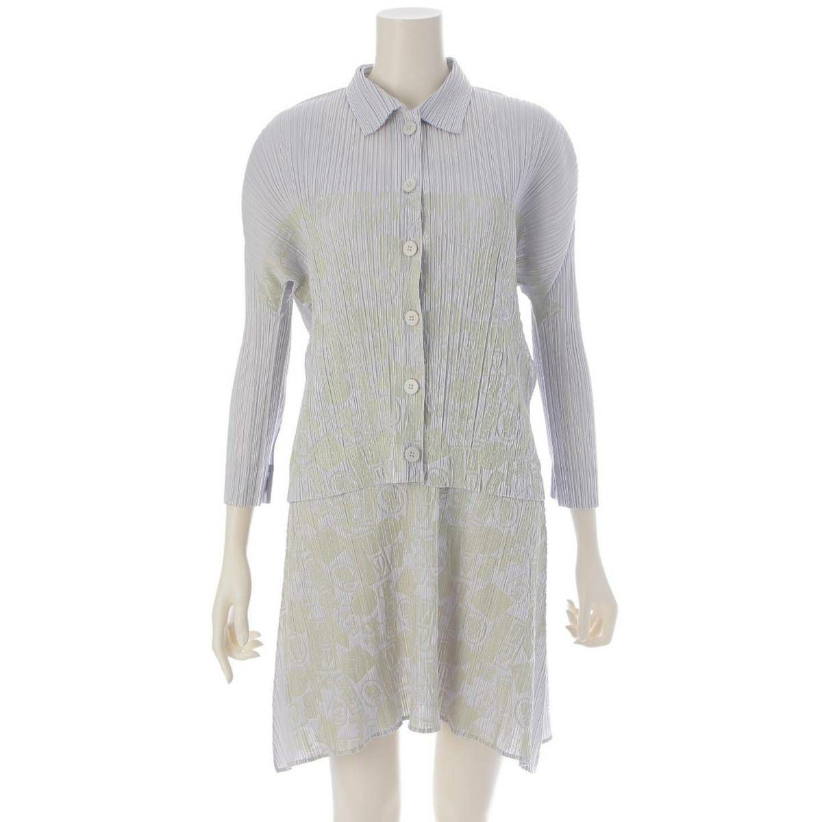 プリーツプリーズ イッセイミヤケ 型押し トラフィック スタンプ ジャケット ワンピース アンサンブル ライトグレー 3