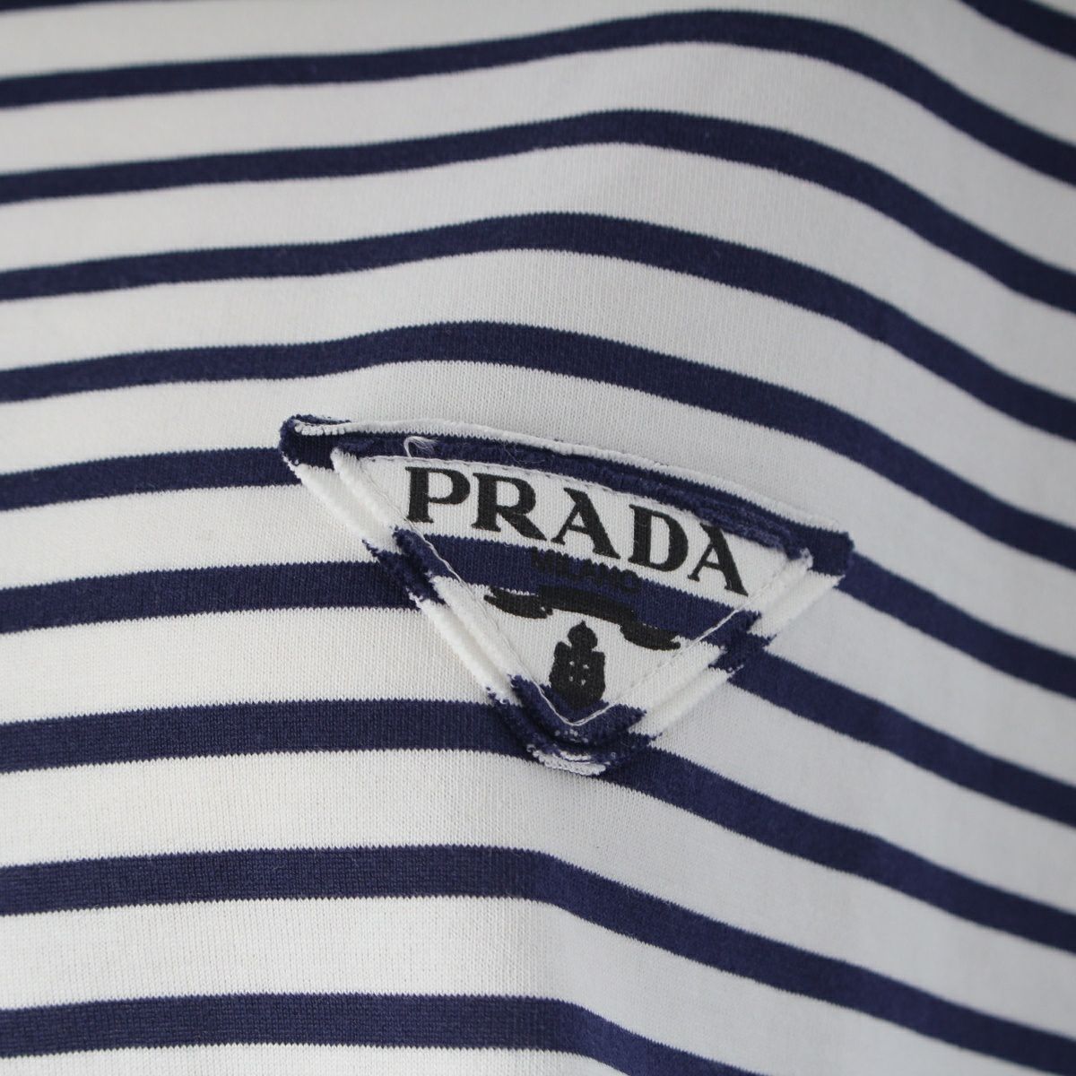他の画像を見る PRADA プラダ コットン トライアングル ロゴ ボーダー クロップ トップス S221 ホワイト ネイビー お気に入りに登録する 当店特別価格 ¥ 40,700 税込 円 37,000円