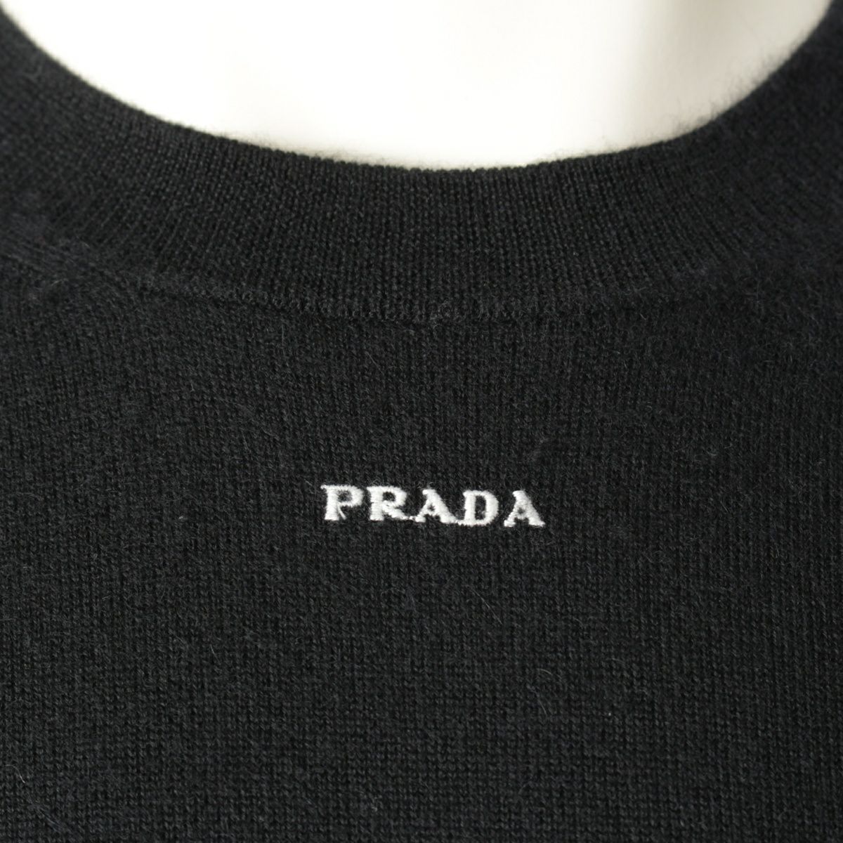 プラダ カシミヤ ロゴ刺繍 クールネック ニット セーター トップス UMB678 ブラック 48