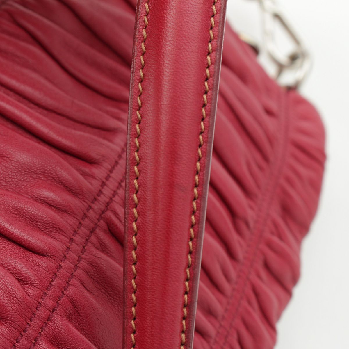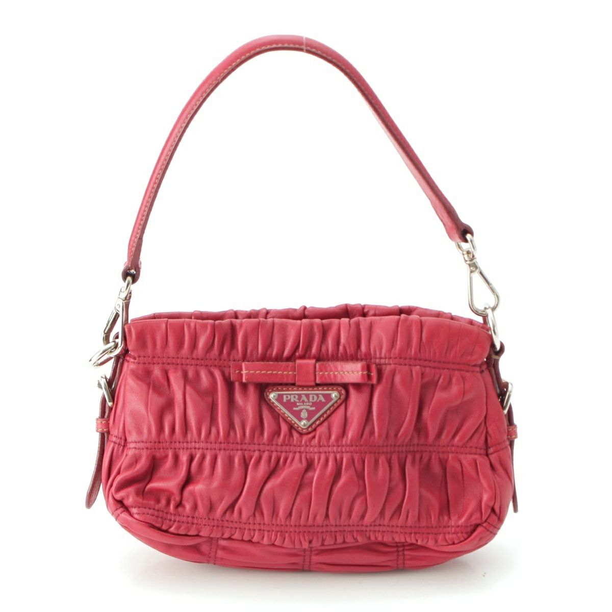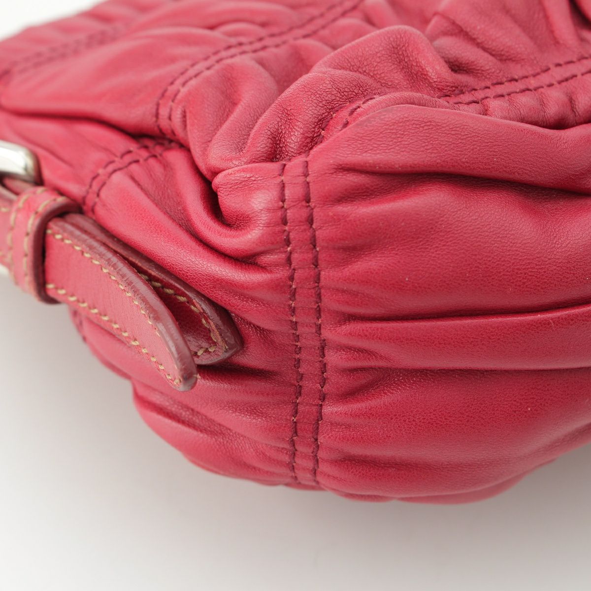 プラダ ナッパレザー ギャザー トライアングルロゴ ワンショルダー ハンドバッグ アクセサリーポーチ BN1676 ボルドー