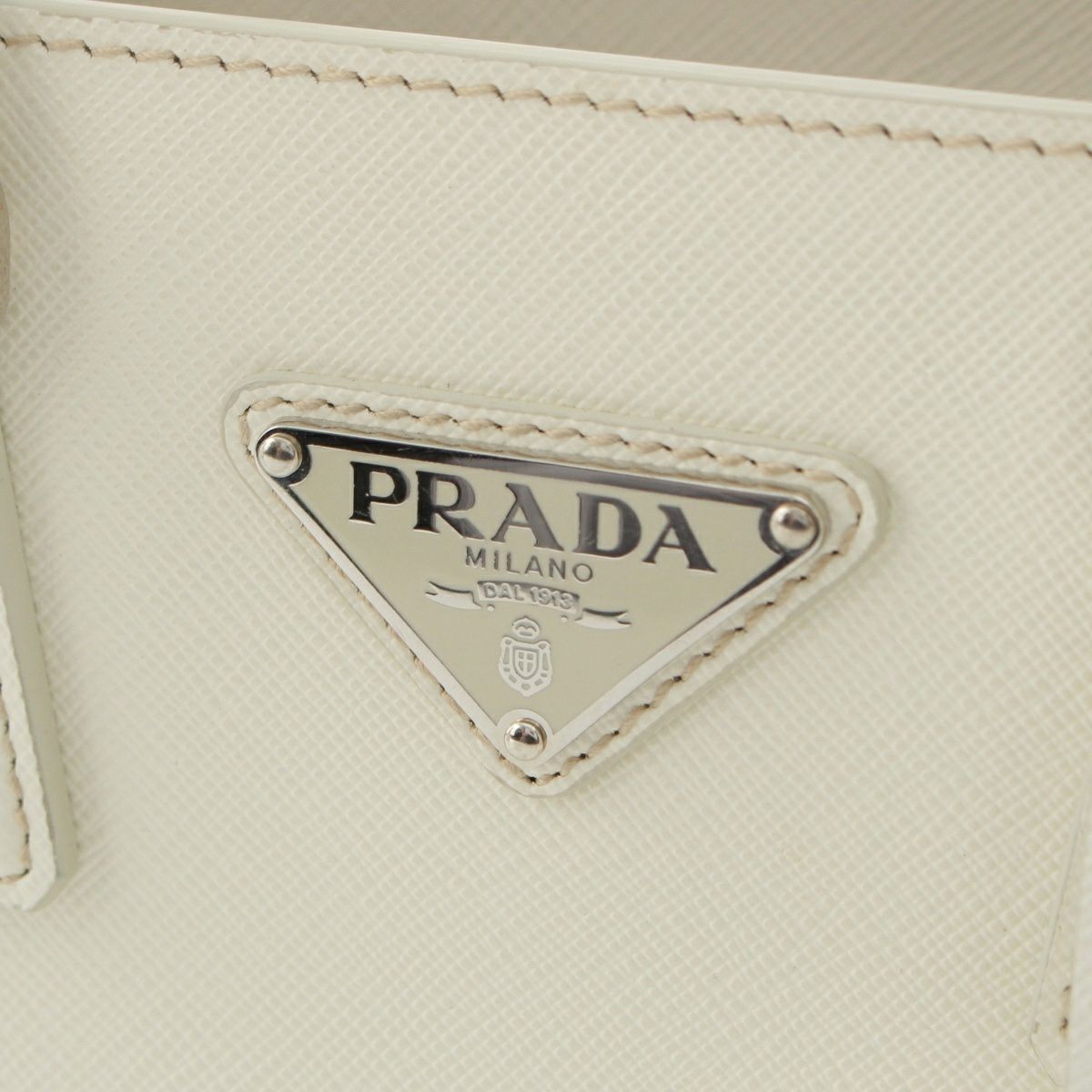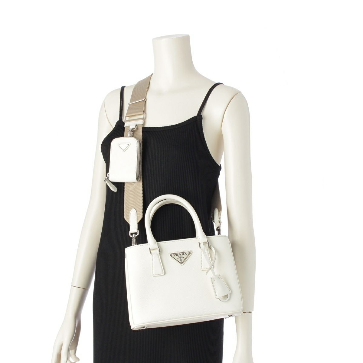 プラダ レザー トライアングルロゴ サフィアーノラクス ガレリア スモール 2WAY ハンドバッグ ホワイト