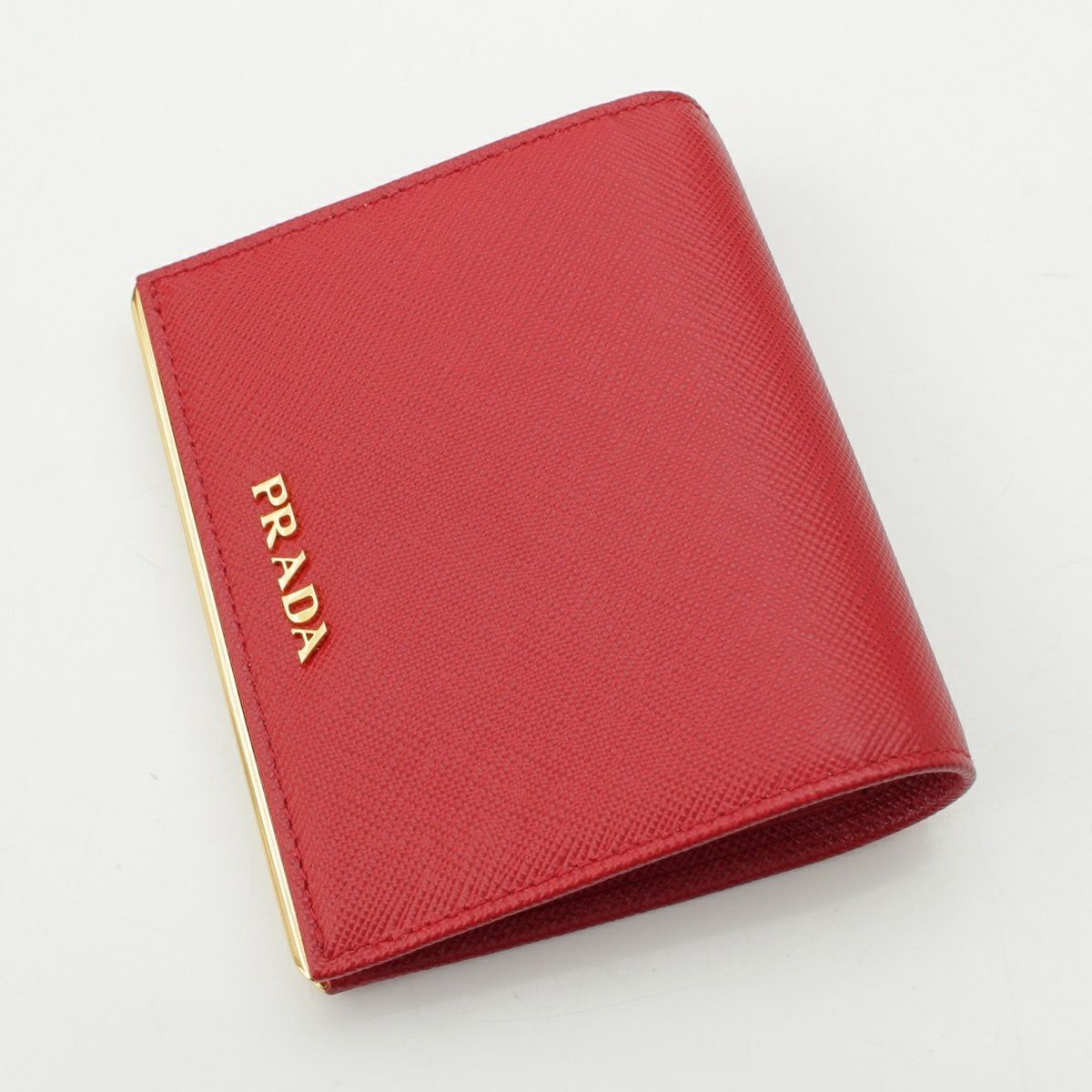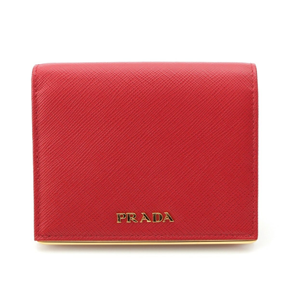 プラダ レザー ロゴ 二つ折り財布 コンパクトウォレット レッド