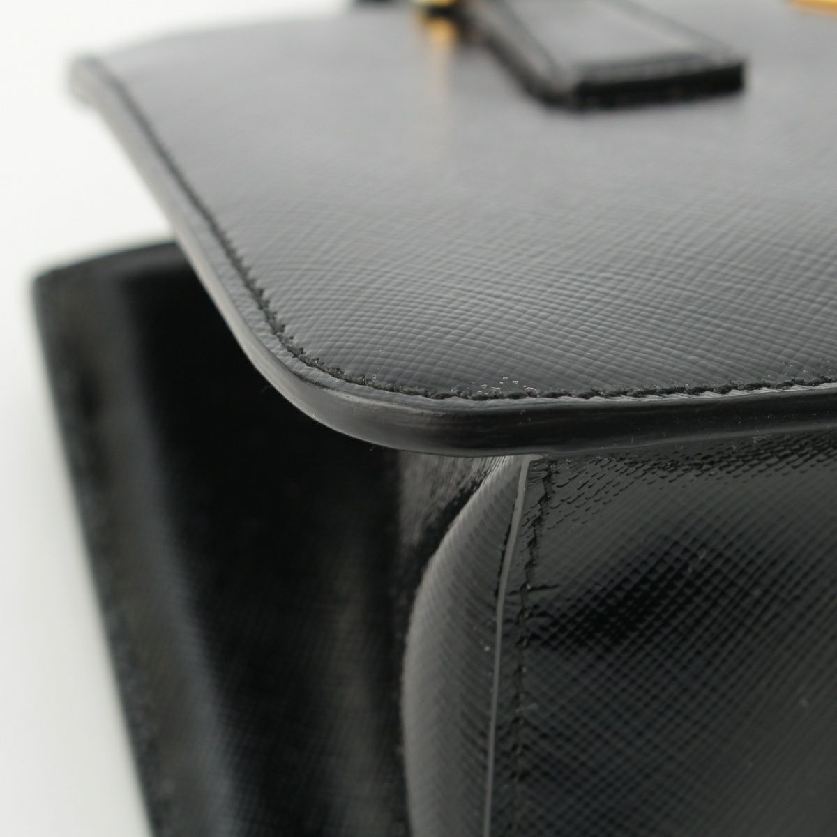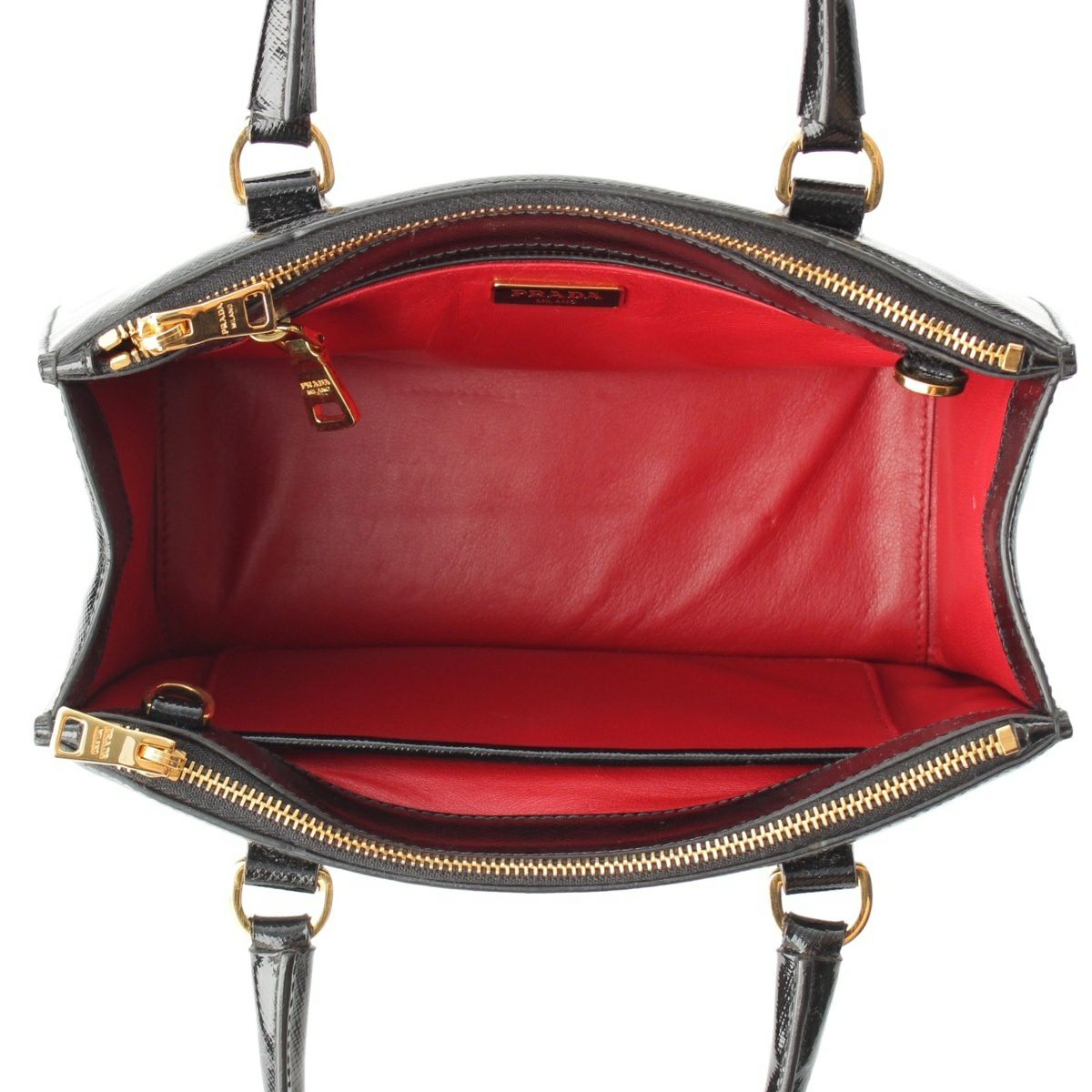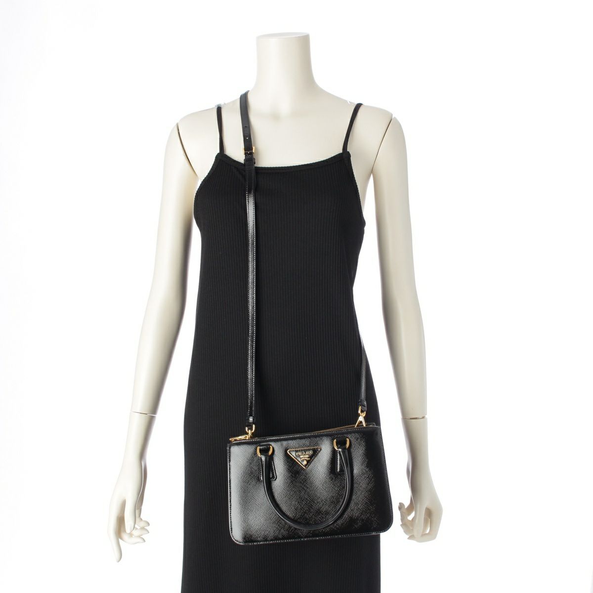 プラダ サフィアーノ レザー トライアングル ロゴ パテント 2way ハンドバッグ ショルダーバッグ ブラック