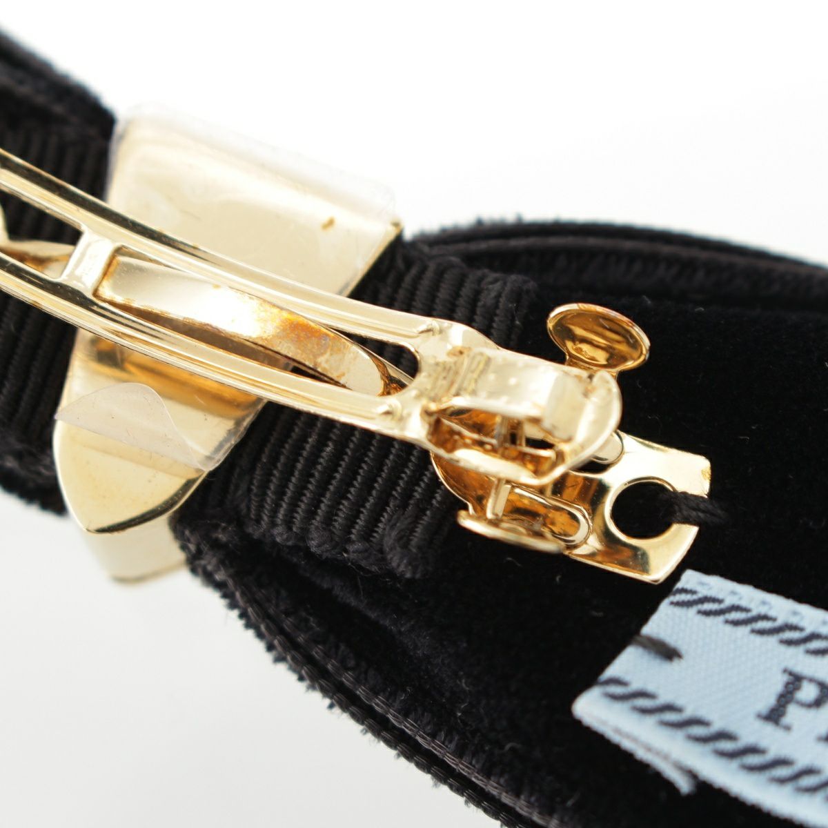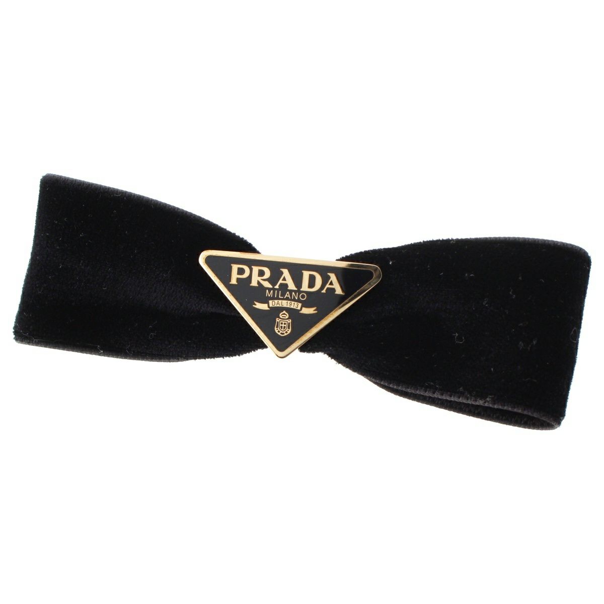 プラダ ベロア トライアングルロゴ リボン バレッタ ヘアクリップ ヘアアクセサリー ブラック