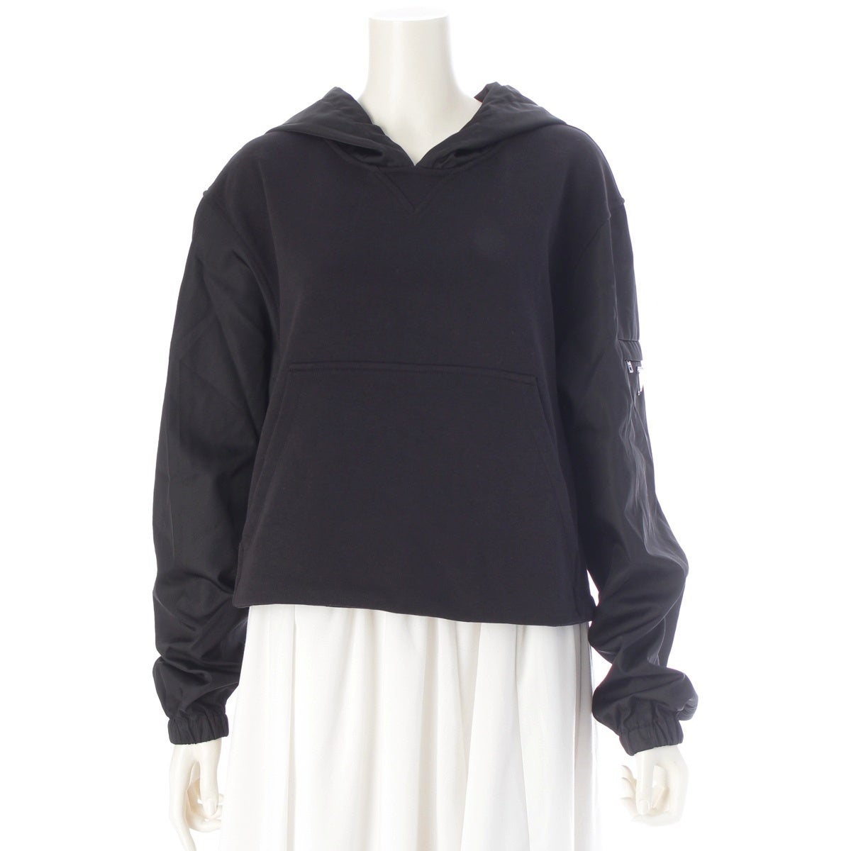 プラダ 21AW リナイロン コットン ナイロン 切替 クロップド パーカー トップス 134643 ブラック L