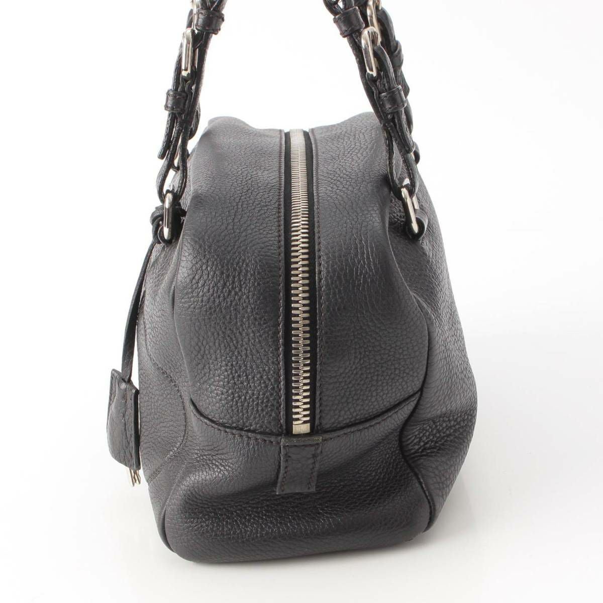 プラダ Prada 型押しレザー ロゴ ミニボストンショルダーバッグ ハンドバッグ BR3091 ブラック