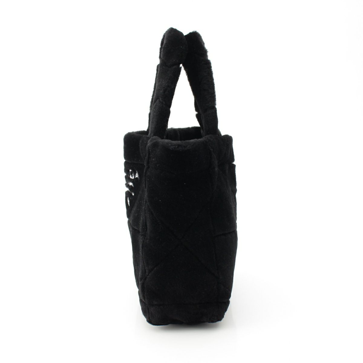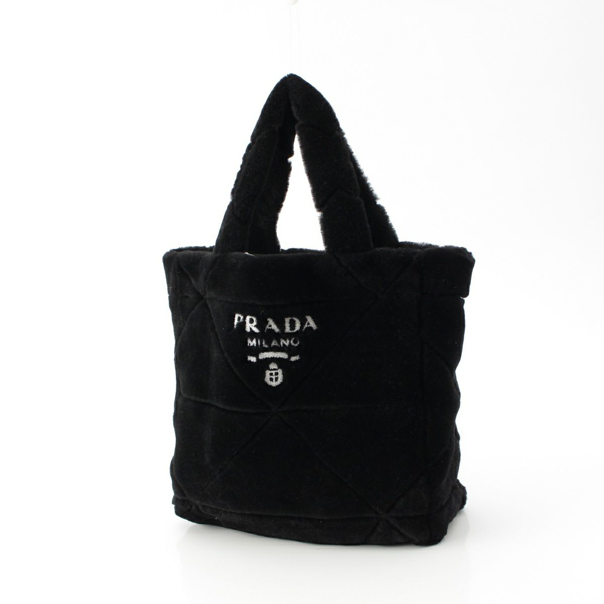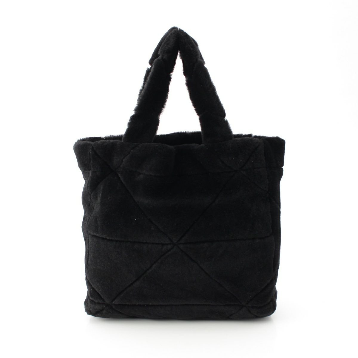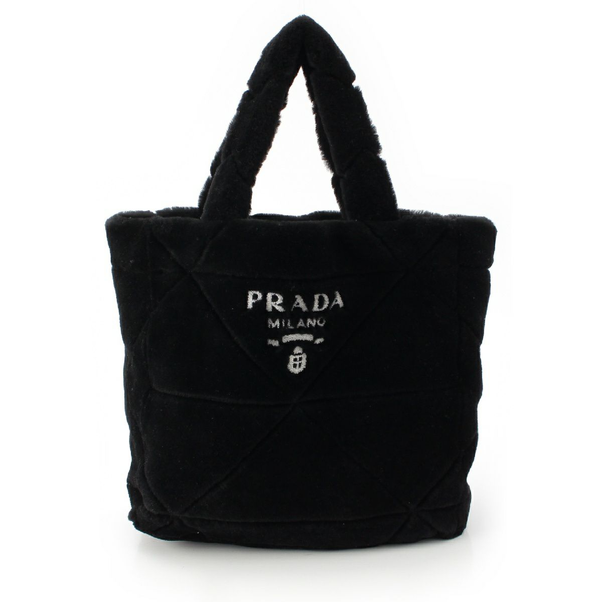 プラダ ムートン ロゴ シアリング ポーチ付き トートバッグ ハンドバッグ 1BG427 ブラック