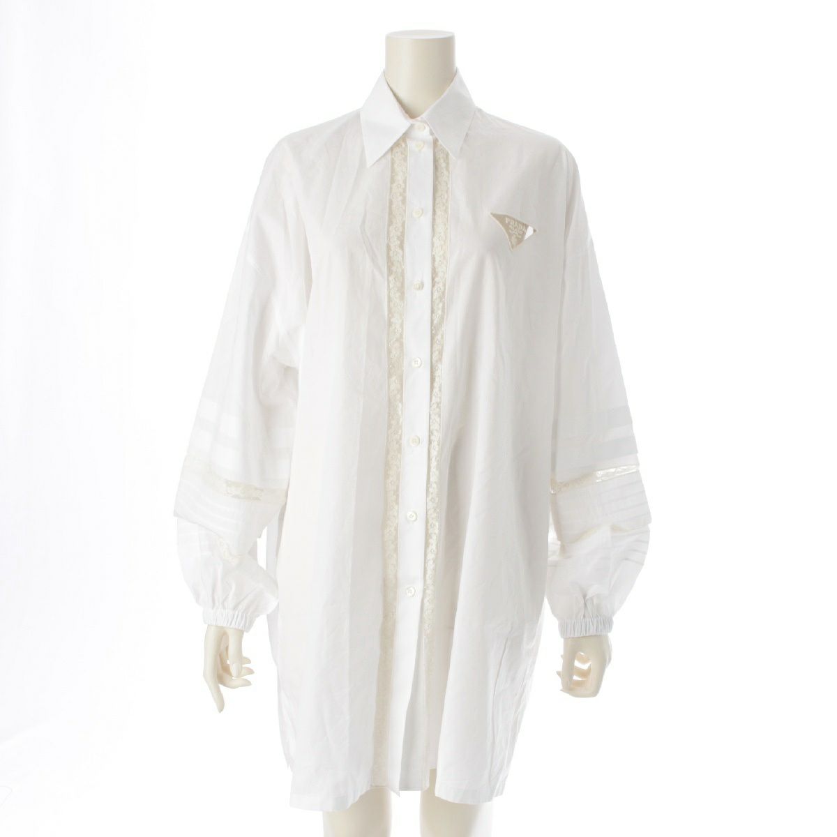 プラダ 22年 コットン トライアングルロゴ レース切替 ロングシャツ ワンピース ラップ ワンピース P3H89R ホワイト オフホワイト 36