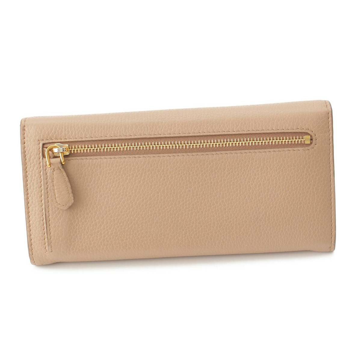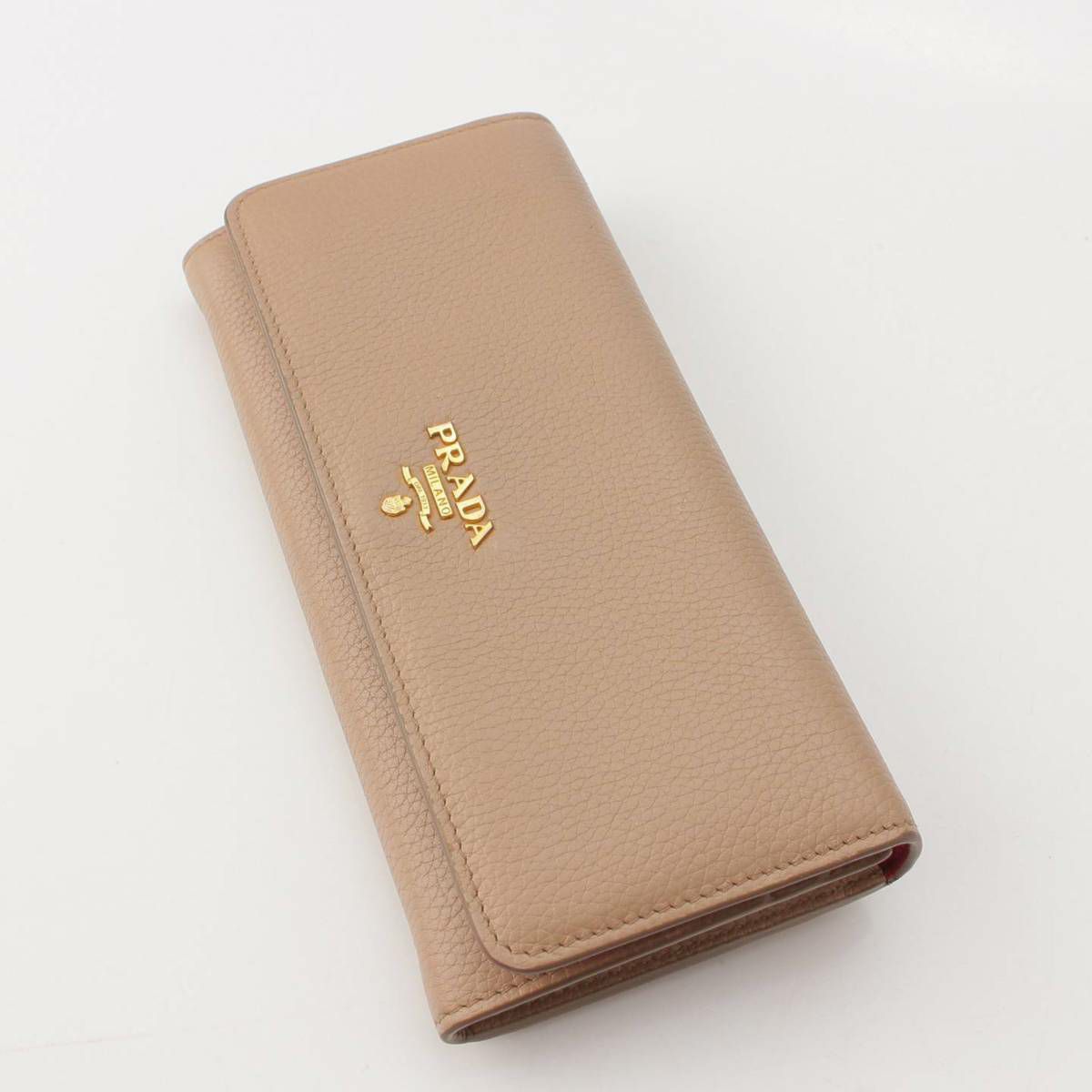 プラダ Prada ロゴ レザー パスケース付き ロングウォレット 二つ折り長財布 1MH132 ベージュ