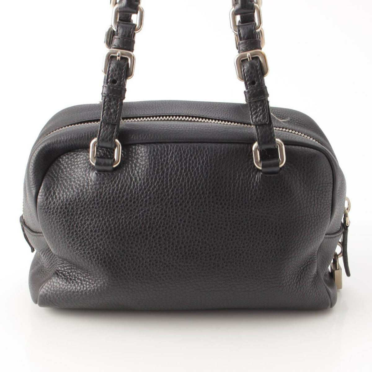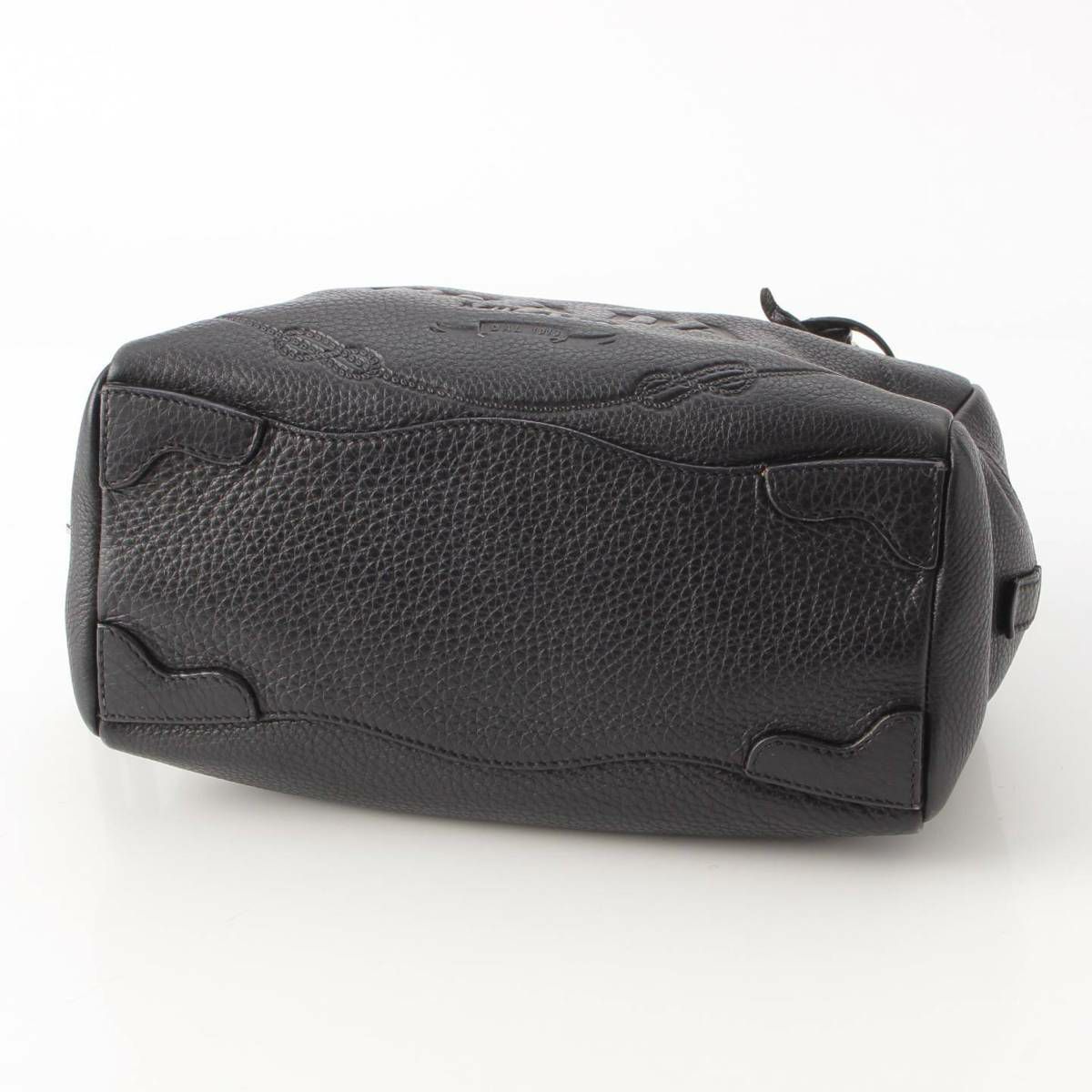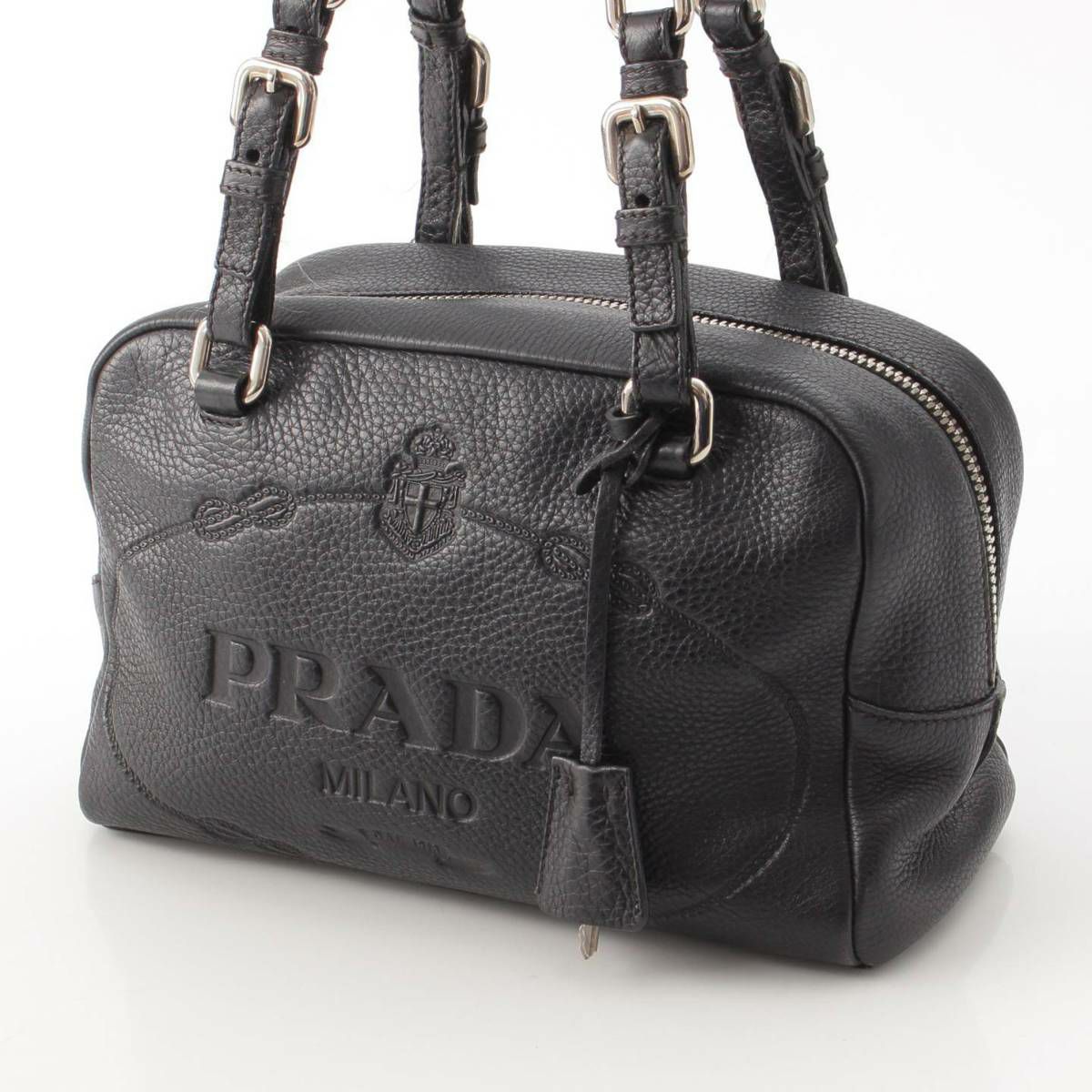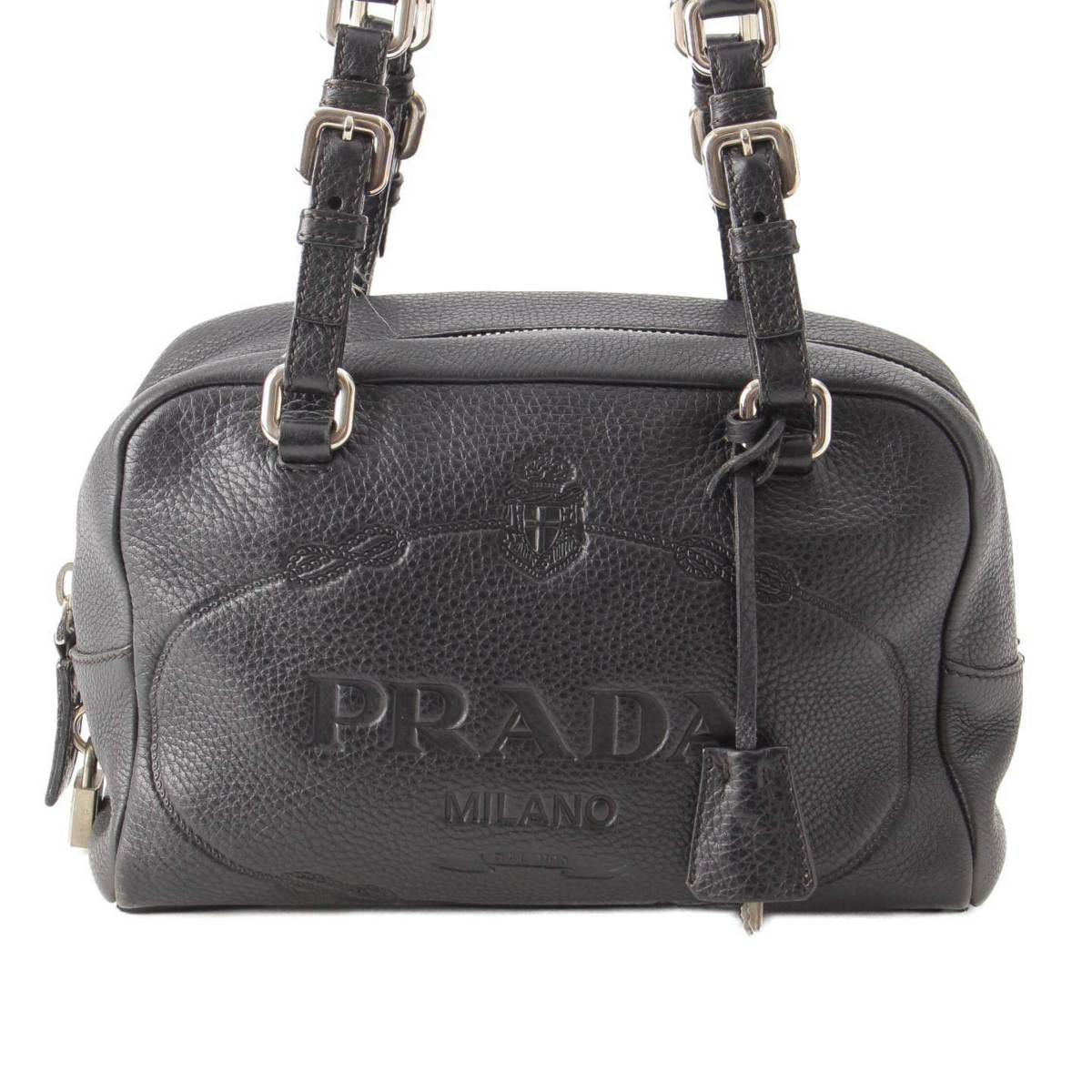 プラダ Prada 型押しレザー ロゴ ミニボストンショルダーバッグ ハンドバッグ BR3091 ブラック