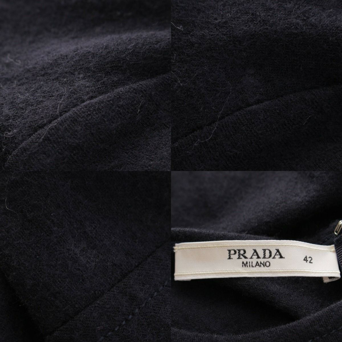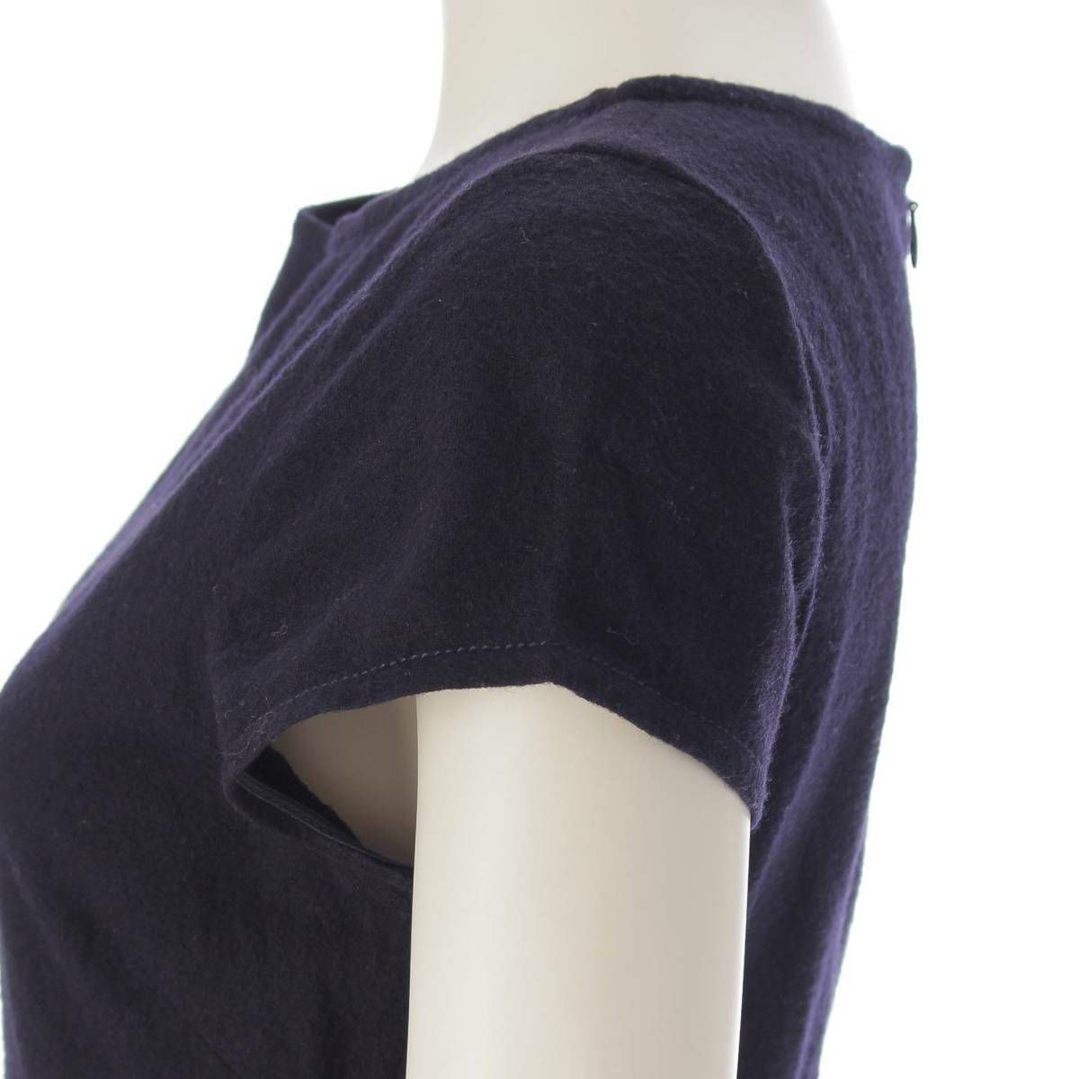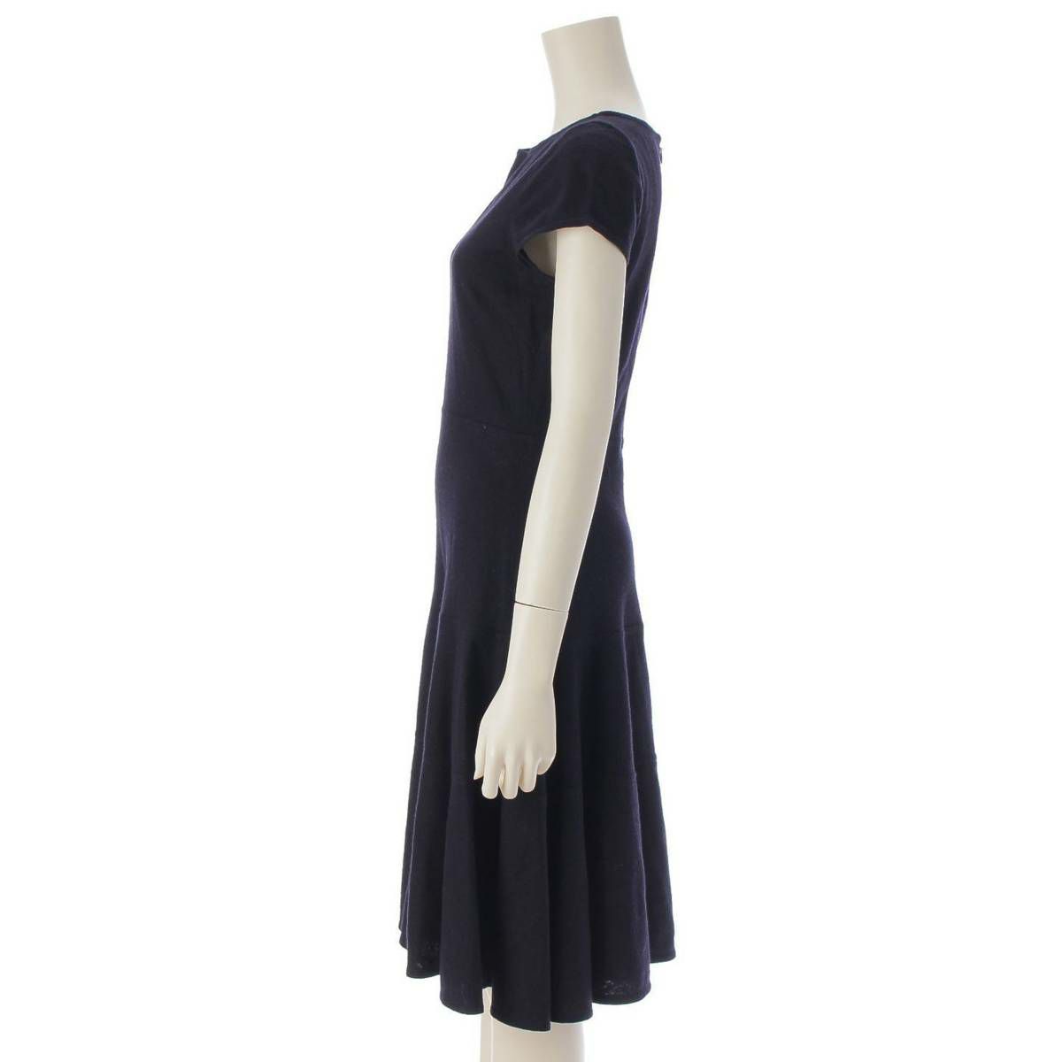 プラダ ウール クルーネック 半袖 フレア ワンピース ネイビー 42