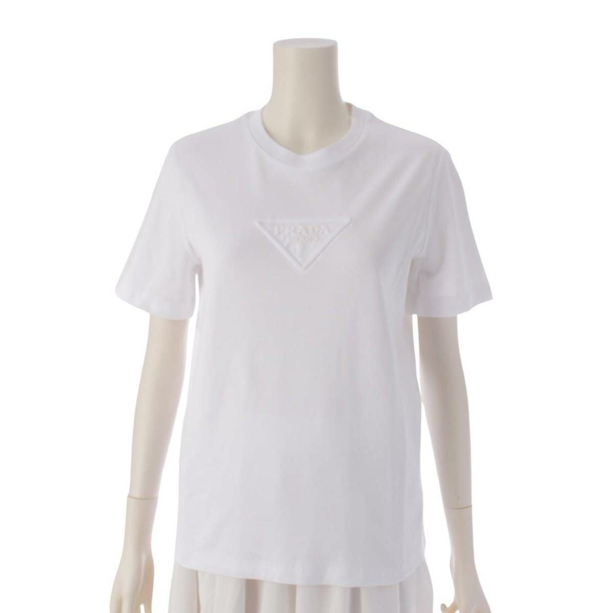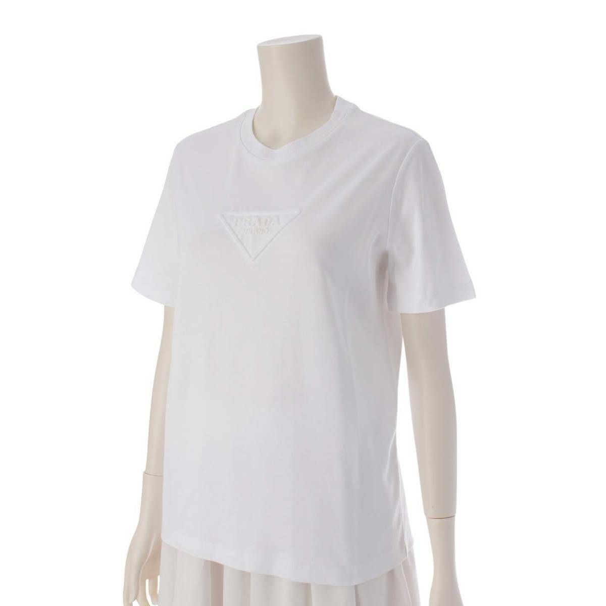 プラダ Prada 22年 トライアングルロゴ 半袖 Tシャツ コットン トップス 35838 ホワイト S