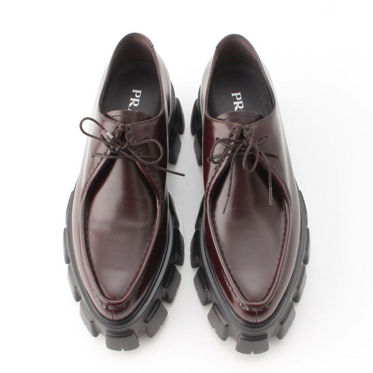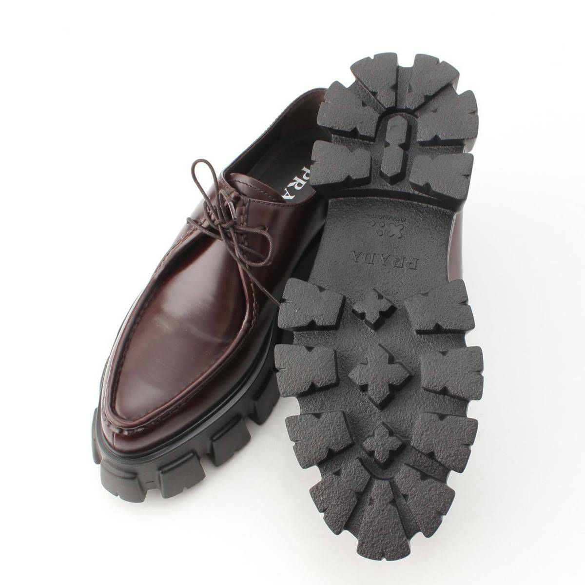 プラダ メンズ モノリス ブラッシュドレザー レースアップ シューズ 2EE361 ブラウン 7