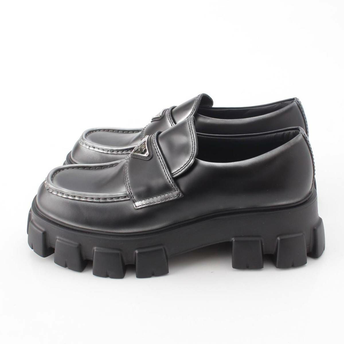 プラダ メンズ モノリス ブラッシュドレザー ローファー 2DE129 メタリックシルバー 8 1/2