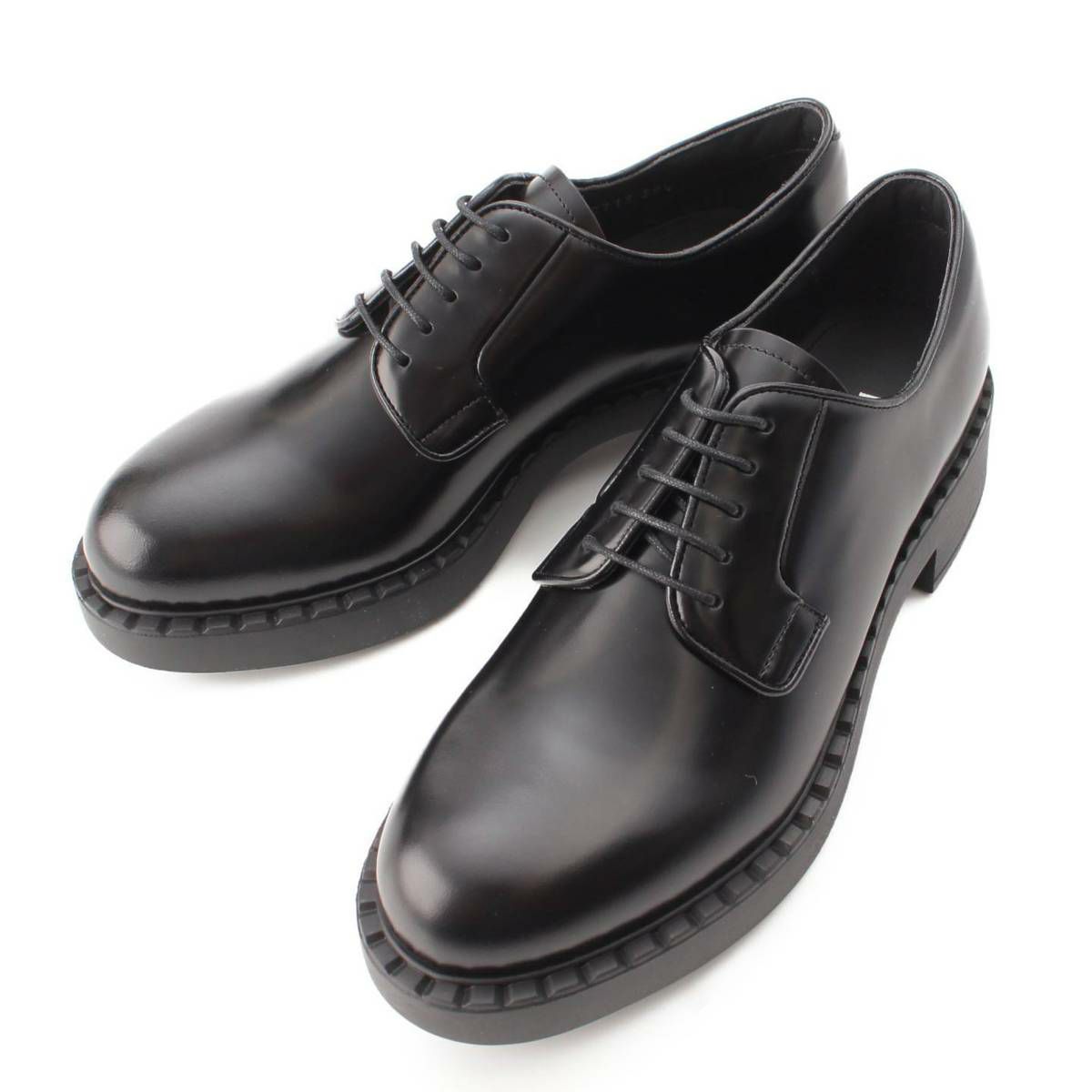 プラダ Prada ブラッシュドレザー レースアップ プレーントゥシューズ ブラック 36.5