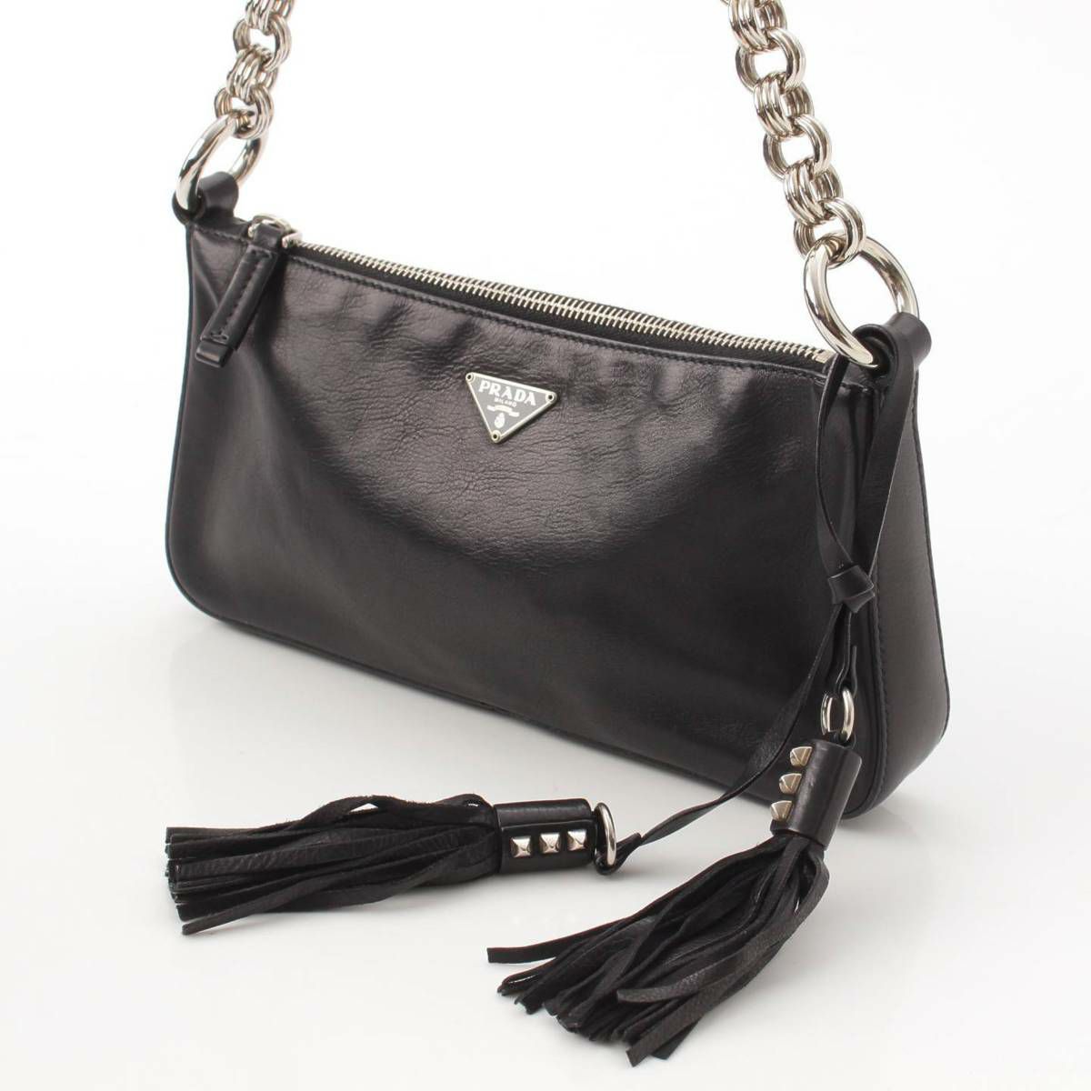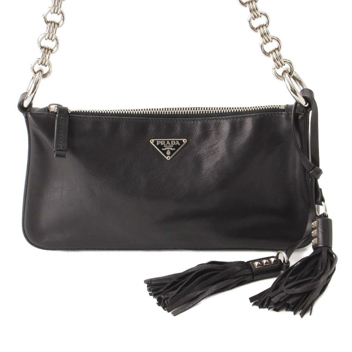 プラダ Prada ロゴ トライアングル プレート カーフレザー チェーンワンショルダーバッグ ブラック